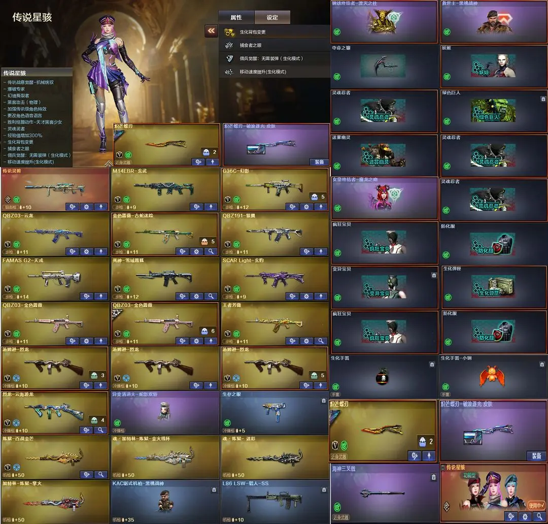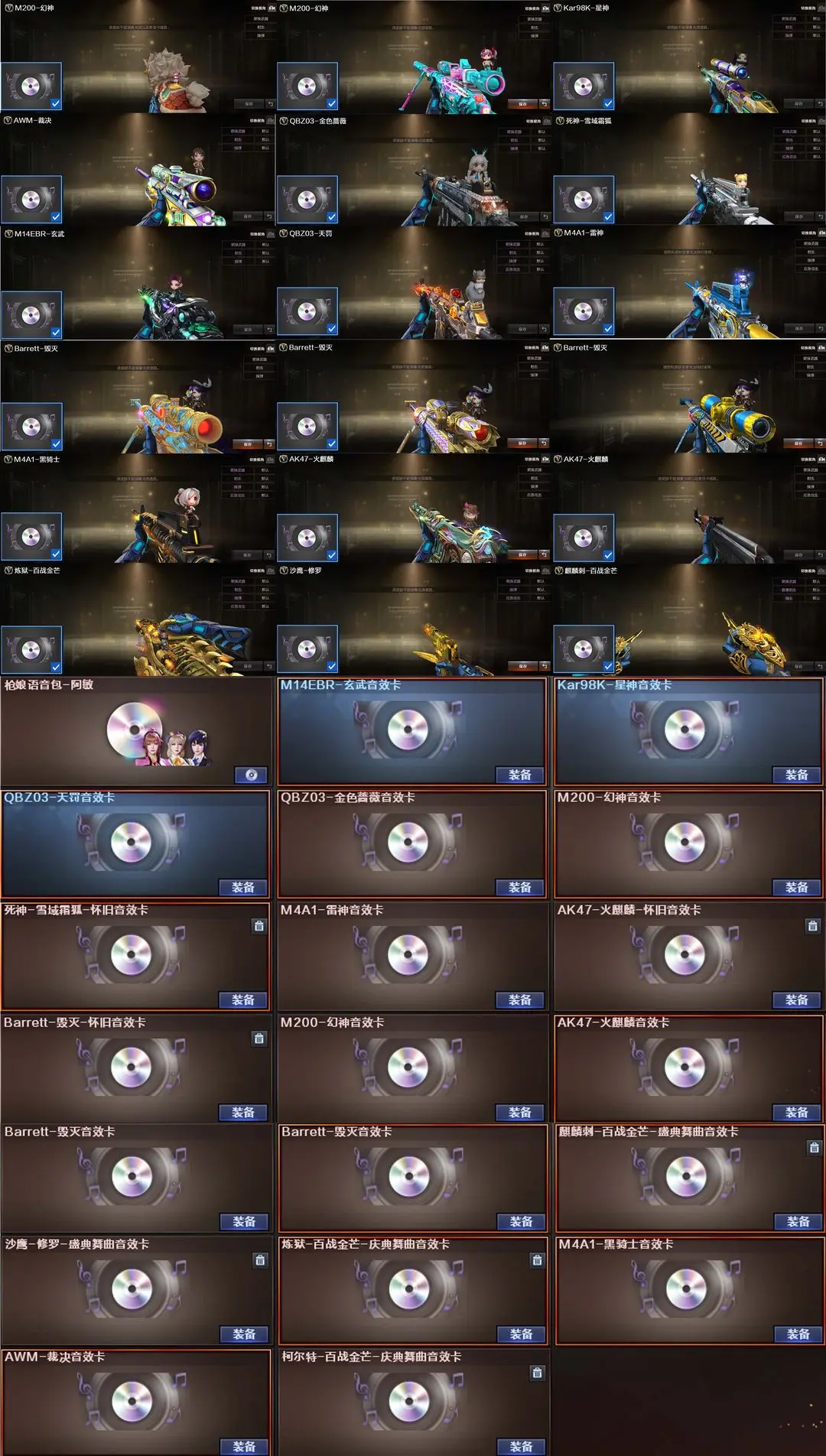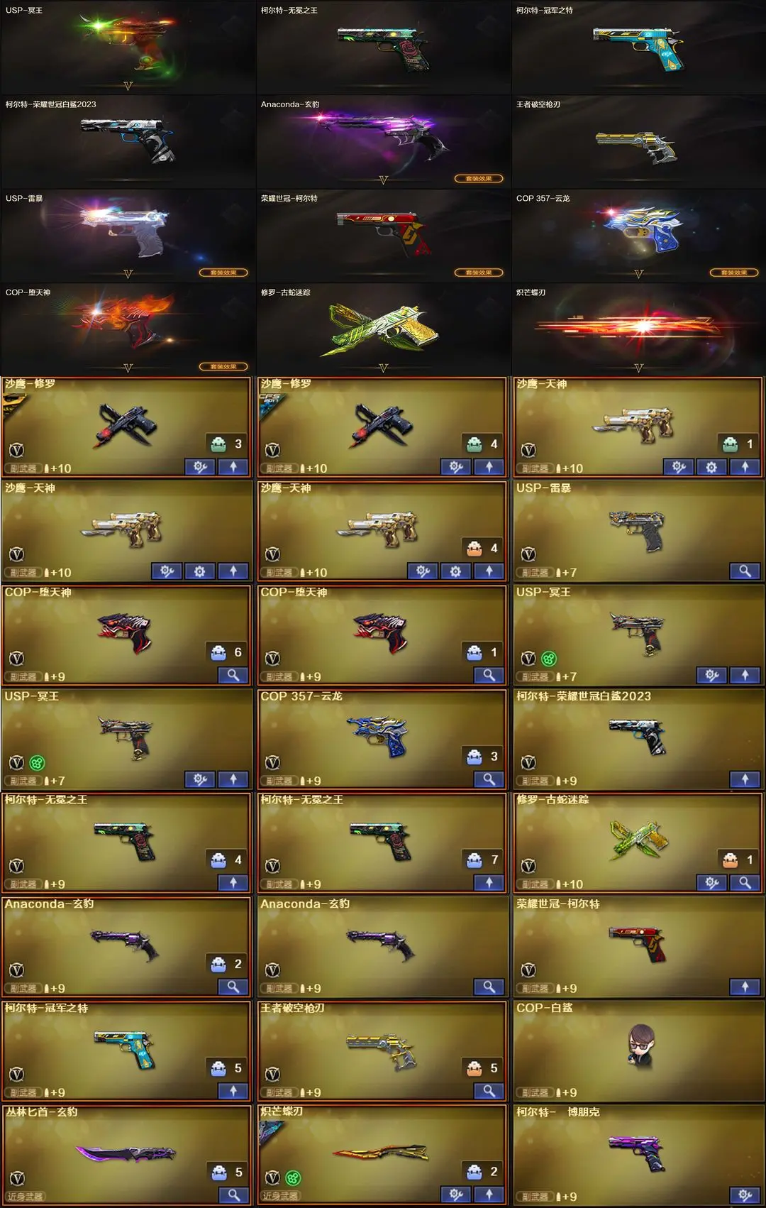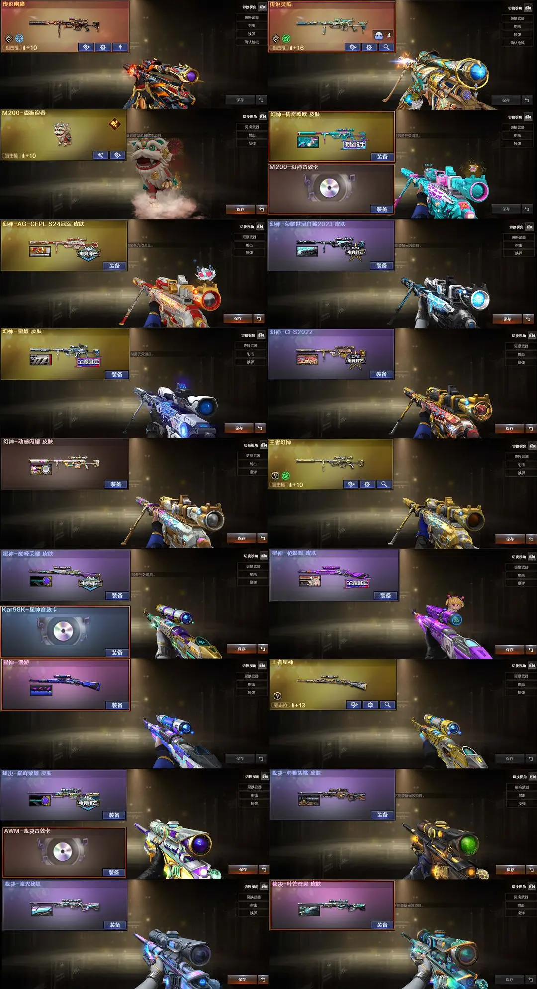 【装备道具】: 传说幽瞳/传说灵眸/传说星骇❤幻神-动感闪耀/幻神-AG-CFPL S24冠军/幻神-欧欧/幻神-荣耀世冠白鲨2023/幻神-CFS2022/幻神-星耀/星神-巅峰荣耀 皮肤/星神-枪娘默/星神-漫游/毁灭-定军扬威/裁决-叶芒苍灵 皮肤/裁决-典雅胡桃/裁决-流光秘银/裁决-巅峰荣耀/火麒麟-玉面羞花/雷神-仲达白露/雷神-荣耀之魄/黑骑士-典雅胡桃/金色蔷薇-破浪逐光/白虎-白鲨-S23冠军/QBZ-CFS2024/QBZ-AGS19冠军/QBZ-荣耀世冠白鲨/QBZ-冠军之薇/QBZ-枪娘阿敏/QBZ03-传奇宠儿/炽芒蝶刃-破浪逐光❤FAMAS G2-天戎/G36C-幻影/QBZ191-银翼游侠/USP-冥王2把/白虎-电玩蓝兔/王者白虎/星神-长生圣莲/王者凌虎/王者霜心/王者破空枪刃/柯尔特-无冕之王/柯尔特-冠军之特/USP-雷暴❤幻神音效卡/星神音效卡/金色蔷薇音效卡/天罚音效卡/玄武音效卡/雷神音效卡/黑骑士音效卡毁灭音效卡/裁决音效卡/炼狱-百战金芒❤堕天神套装/云龙套装/玄豹套装/迷迭香/电竞教官-云悠悠/月兔特工/雾萌萌/晴雅/隐/SCAR玄豹/