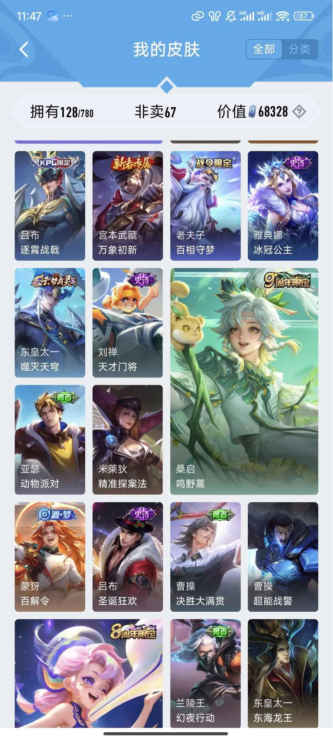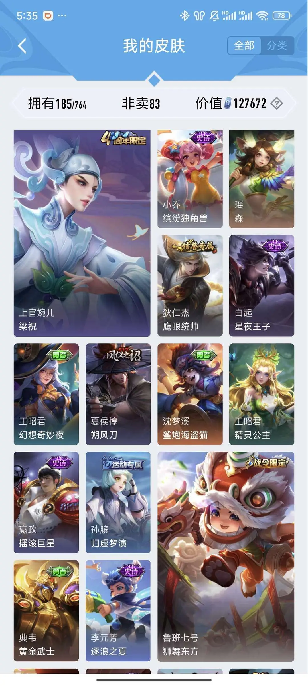 本游戏账号: V8用户,基础段位:最强王者,英雄多,皮肤多。典藏皮肤3个,感受典藏皮肤带来的优质体验快感,FMVP皮肤4个,尽情享受FMVP皮肤带来的主角光环, 私人所属英雄皮肤有:貂蝉 幻阙歌||花木兰 九霄神辉||李白 鸣剑·曳影桑启 鸣野蒿||鲁班七号 江户川柯南||马可波罗 怪盗基德||赵云 淬星耀世||庄周 牧神诗旅||狄仁杰 超时空战士||孙尚香 乘龙·问璇玑||艾琳 觅芳踪||露娜 霜月吟||梦奇 胖达荣荣||孙悟空 地狱火||诸葛亮 鹤羽星尊||张飞 百相守梦||孙悟空 齐天大圣||宫本武藏 地狱之眼||王昭君 乞巧织情||铠 绛天战甲||王昭君 星穹之声||后羿 无尽星芒||孙策 挚爱之约||大乔 挚爱花嫁||孙尚香 异界灵契||虞姬 启明星使||曜 李逍遥||武则天 海洋之心||后羿 黄金射手座||吕布 天魔缭乱,等等