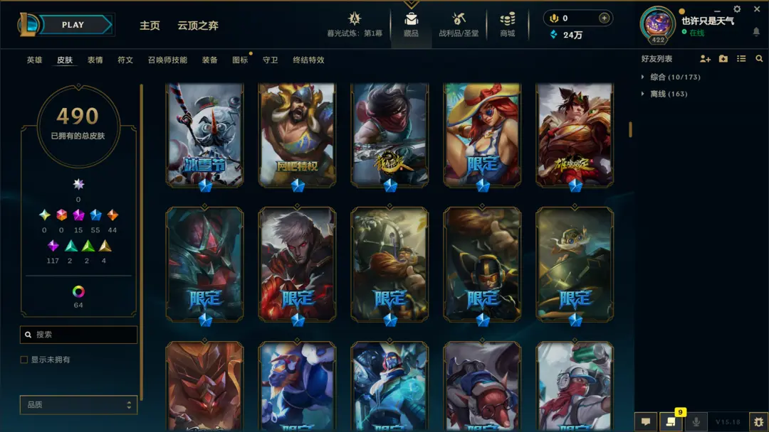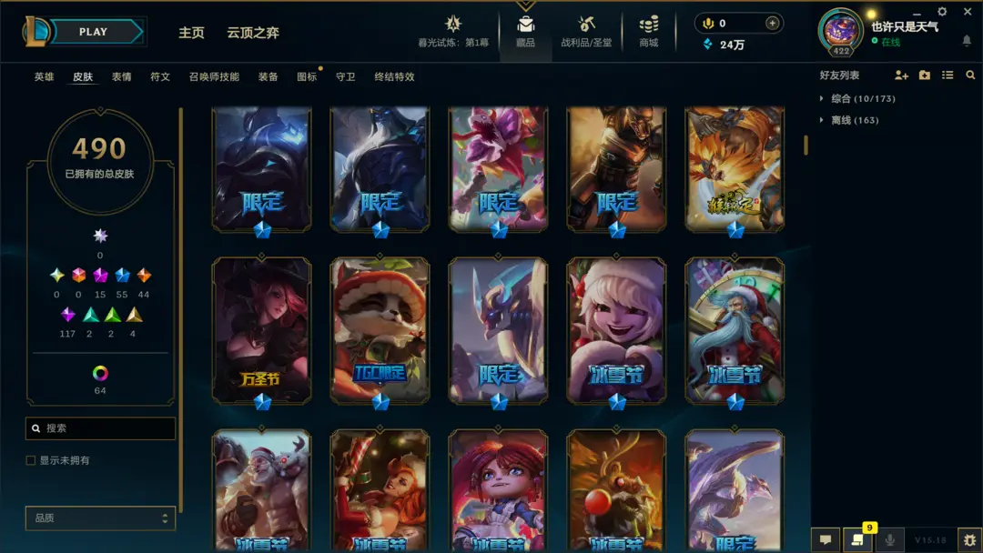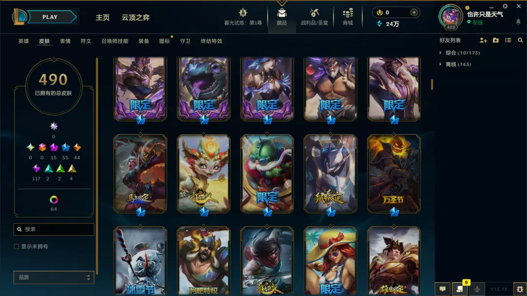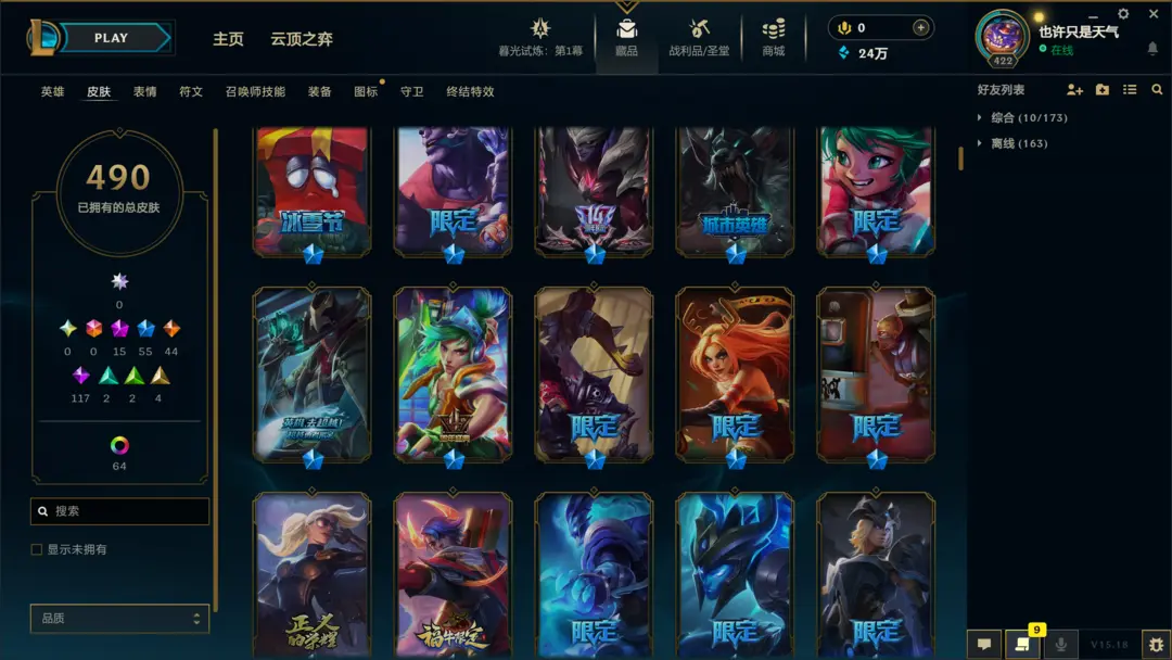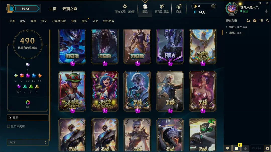 段位准█1000皮肤〓20至臻海克斯〓龙刀青花瓷〓神龙尊者〓黑夜黎明系列