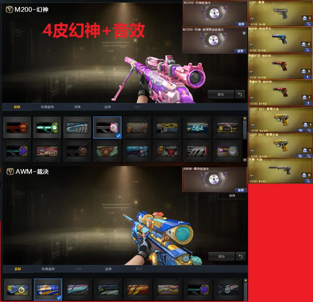 排位:可以、、、、、、生化人物全装(可以变更背包、看僵尸血量):无需换弹、6烈龙、盘龙、4炼狱、死亡之眼、2个生化减速雷、超级对讲机、全部弹匣、、、、、、、、、爆破四防:幻神4皮+音效(宠儿、丹凤、降龙、电流骇客皮肤)、M200-竞技荣光、、、、、USP雷暴、柯尔特竞技荣光、2个世冠柯尔特、2个COP雷霆王者、幻兽沙鹰、、、传说光耀、玄豹白虎、白虎、QBZ金色蔷薇、、、幻神音效、裁决音效、毁灭音效、黑骑士音效、炼狱音效、、、1套幻兽、1套竞技荣光、1套神工天巧、4套雷霆王者、、、生化人物(礼物老人、嘉年华灵狐)、爆破四防(云悠悠、王者魅影、王者潘多拉)