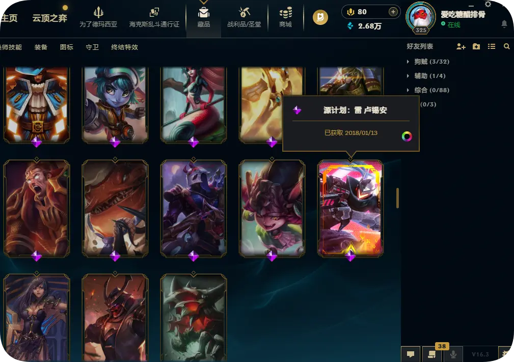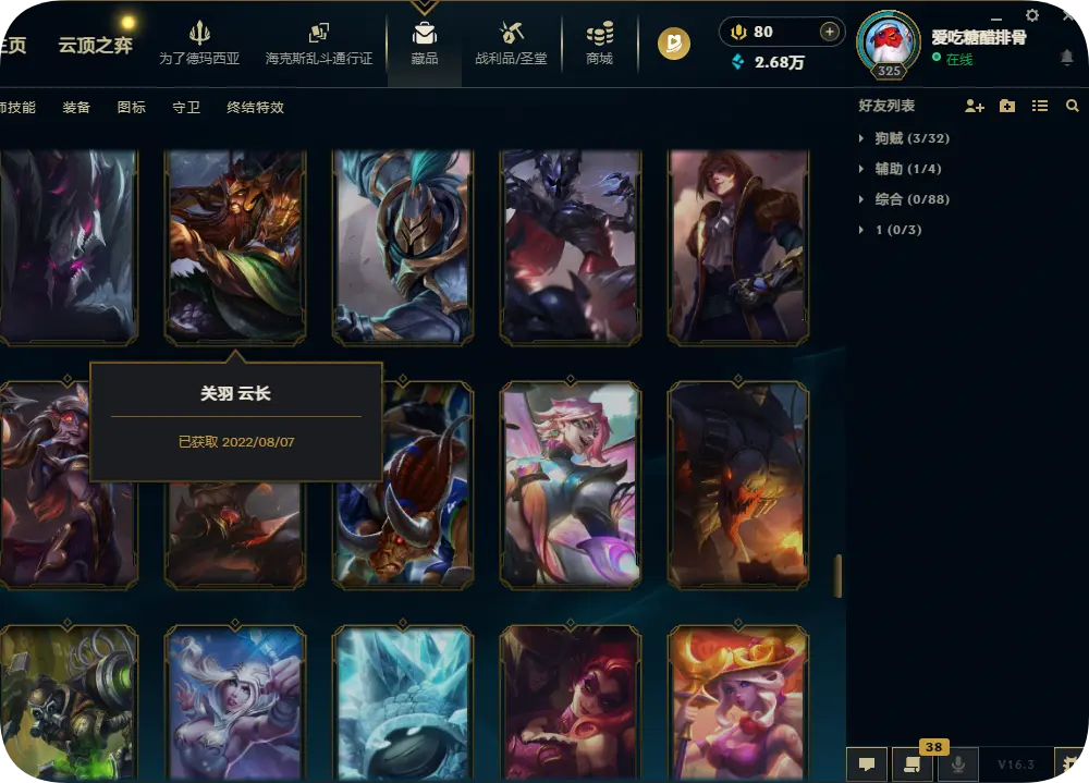 德玛西亚全英雄黄金可排位未来战士暗杀星EZ冰雪节猪妹三星男刀恶魔男爵源计划VN卢锡安关羽光明骑士武器