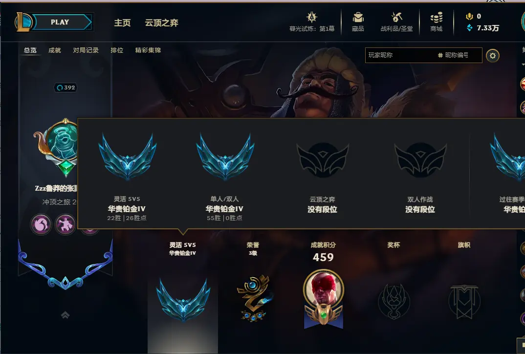 等级: 420级 华贵铂金IV