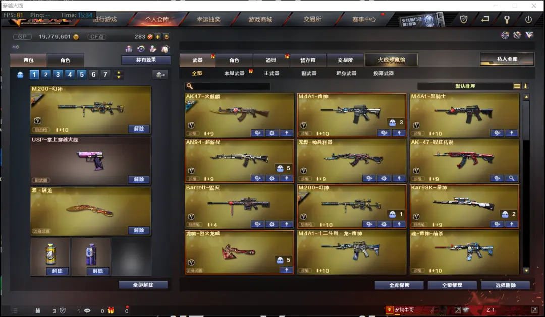 装备不多,但是主武器、副武器、近身武器够用 拥有完美游戏体验。重要的是,特殊装备有:AK47-火麒麟、M200-幻神、堕天使、生化弹匣、等,随意畅选。