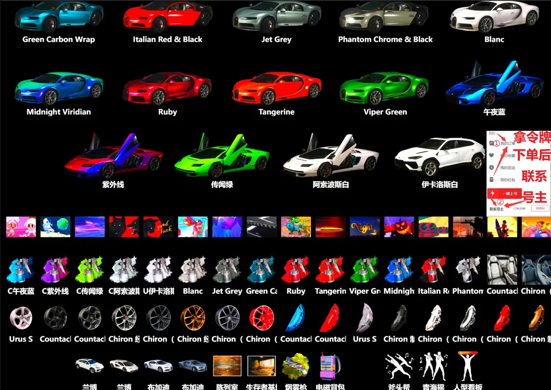 全满色布加迪威龙兰博基尼✅⑩爆裂异色AUG⑩无信号M4妖魔寒蚀小兔玩偶东南亚战神柏林尼尔小丑可排位