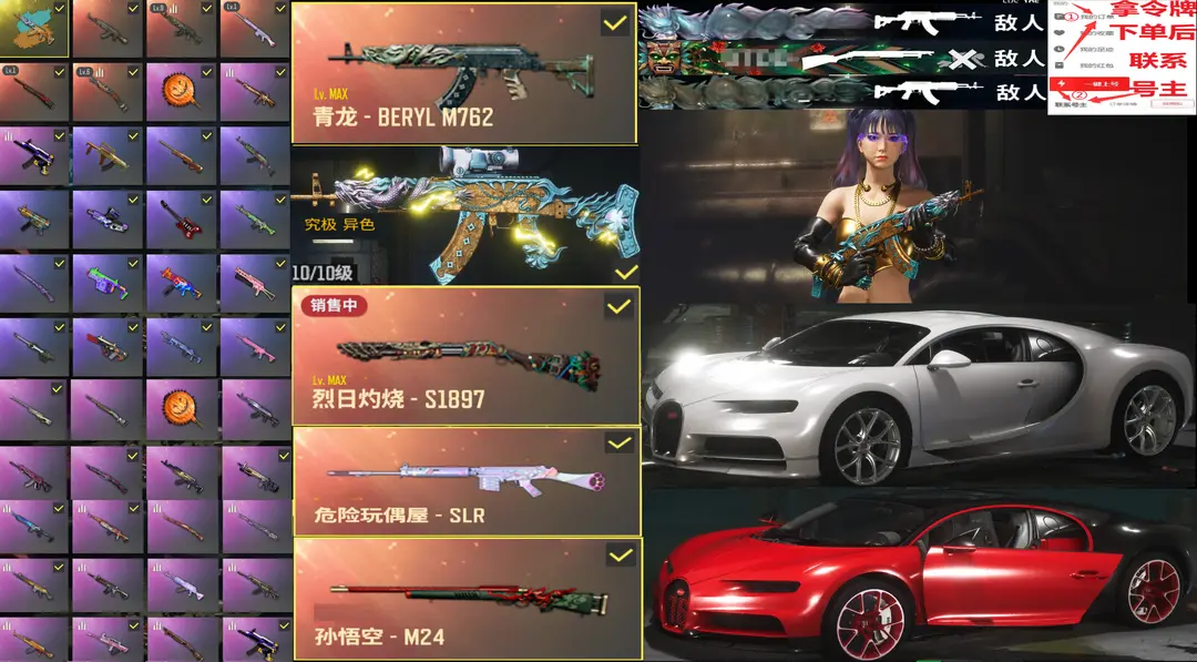布加迪威龙跑车✅⑩异色金龙青龙M762满级烈日S189玩偶炮悟空M24马尾柏林战神悲喜可排位