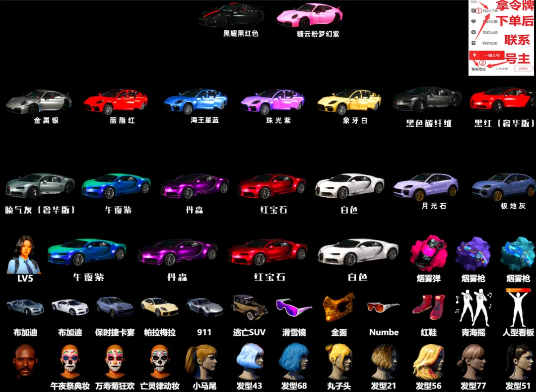 全跑车布加迪威龙保时捷911帕拉梅拉卡宴✅⑩异色ACE妖魔⑩玩偶炮满级瀚娜信号烈日黑人柏林滑雪可排位