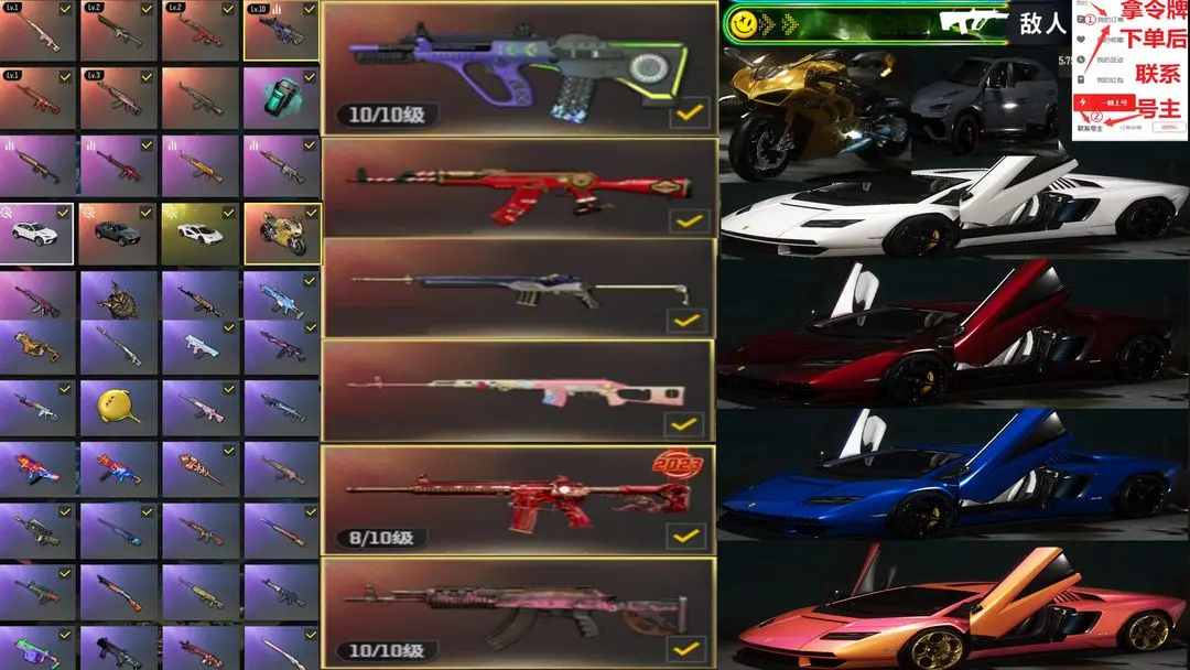全兰博基尼10神器✅⑩霓虹AUG显卡杜卡迪粉梦迷你圣诞AK朱雀火麒麟柏林战神悲喜拉风马尾烟雾金可排位