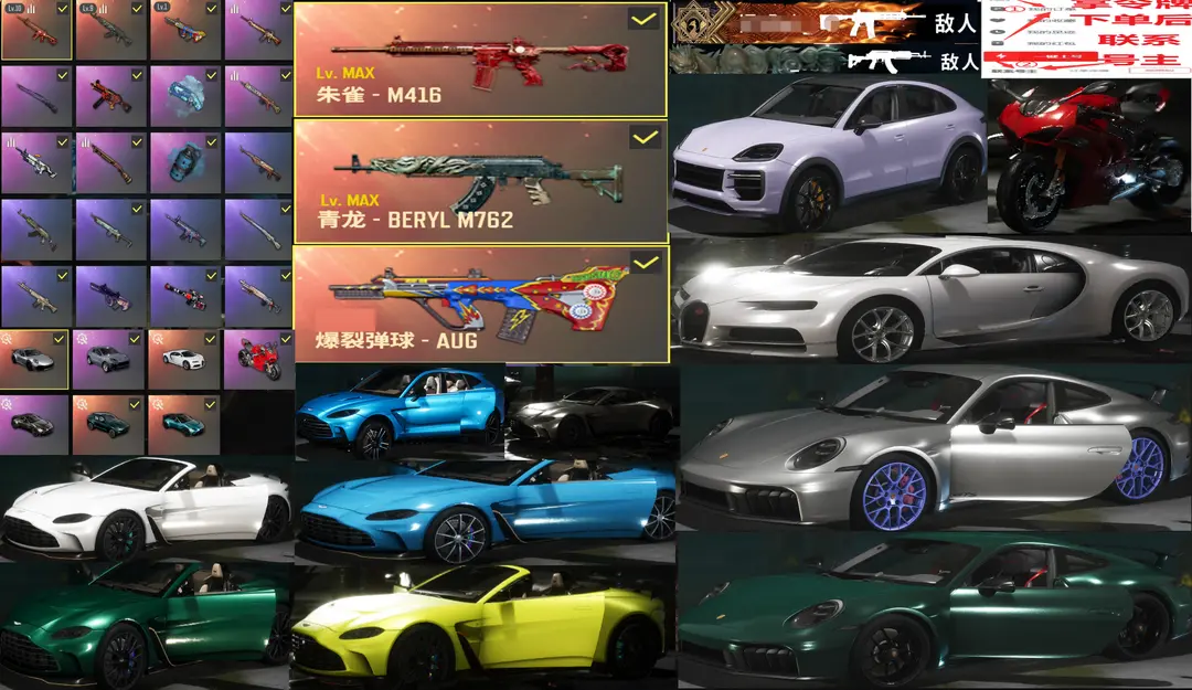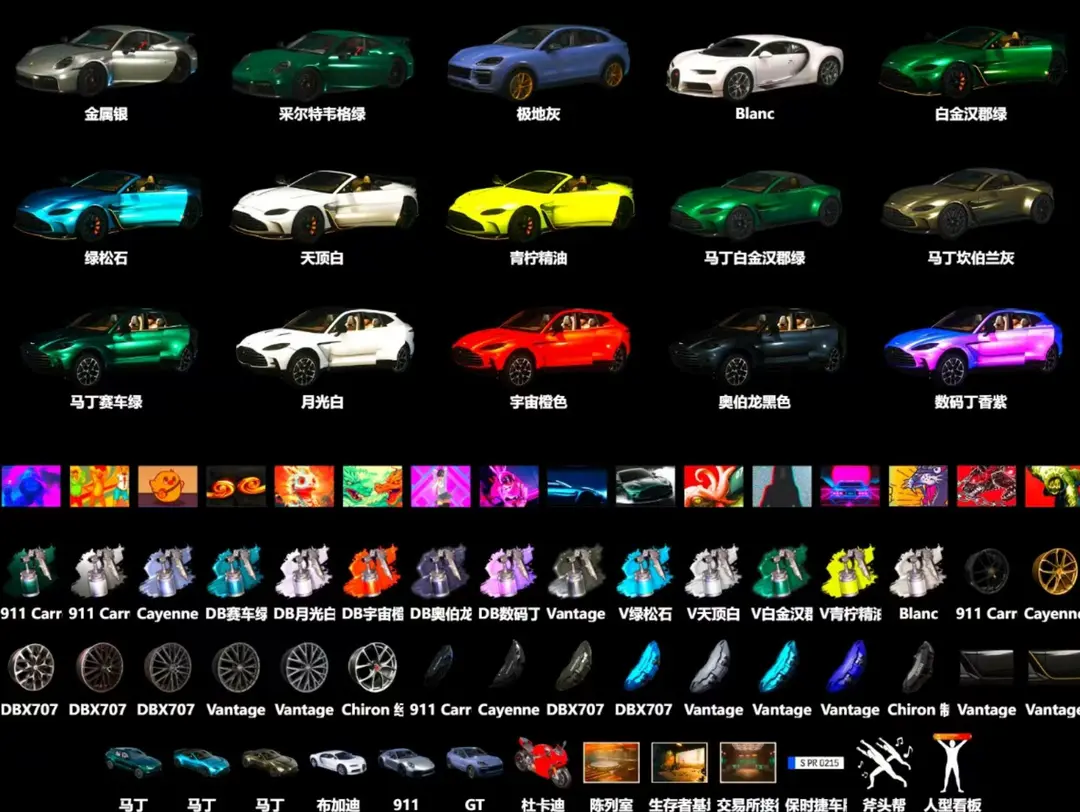 30辆跑车布加迪威龙保时捷911GT杜卡迪阿斯顿马丁✅⑩朱雀M4⑩青龙M762柏林战神黑人金面可排位