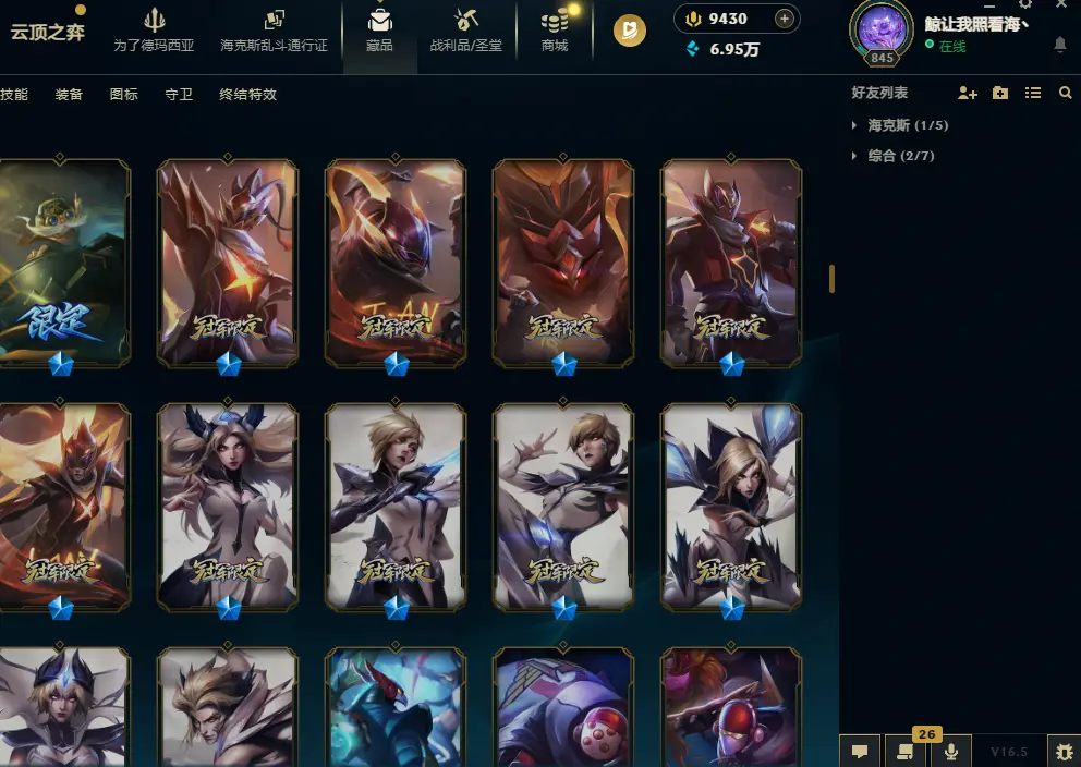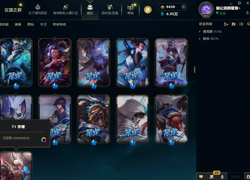 5000皮肤龙瞎圣堂佛耶戈7终极萨勒芬妮全系列至臻神话双殿堂海之歌永恩猴王斩星剑圣IG-SKT-T1