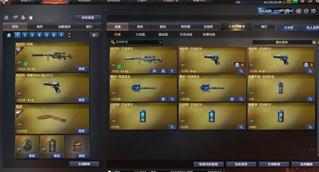 本游戏账号:英雄武器243个; 王者武器24个。 装备不多,但是主武器、副武器、近身武器够用 拥有完美游戏体验。重要的是,特殊装备有:Barrett-毁灭、加特林-炼狱、AK47-火麒麟、AN94-超新星、雷霆之怒、M4A1-青龙、Barrett-朱雀、麒麟刺、M4A1-黑骑士、AK47-黑武士、AA-12-雷霆、M4A1-雷神、M200-幻神、HK417-朱雀、雷霆之锋、QBZ03-金色蔷薇、雷霆之契、M14EBR-玄武、USP-雷暴、AK47-雷暴、传说暗裔、Kar98K-星神、M4A1-夜魔、Scar Light-白虎、擎天-竞技荣光、M200-竞技荣光、柯尔特-竞技荣光、闪光弹-竞技荣光、M4A1-黑龙、传说辉光、烟雾弹-竞技荣光、COP-堕天神、黑骑士-海王、破空枪刃-夜魔、高爆手雷-竞技荣光、M4A1-雷霆、M4A1-玫瑰精灵、沙鹰-幻兽、AWM-天龙、王者之势-觉醒版、王者之锋-觉醒版、