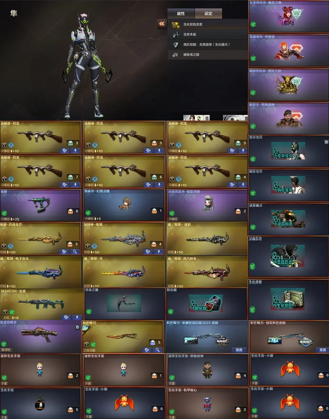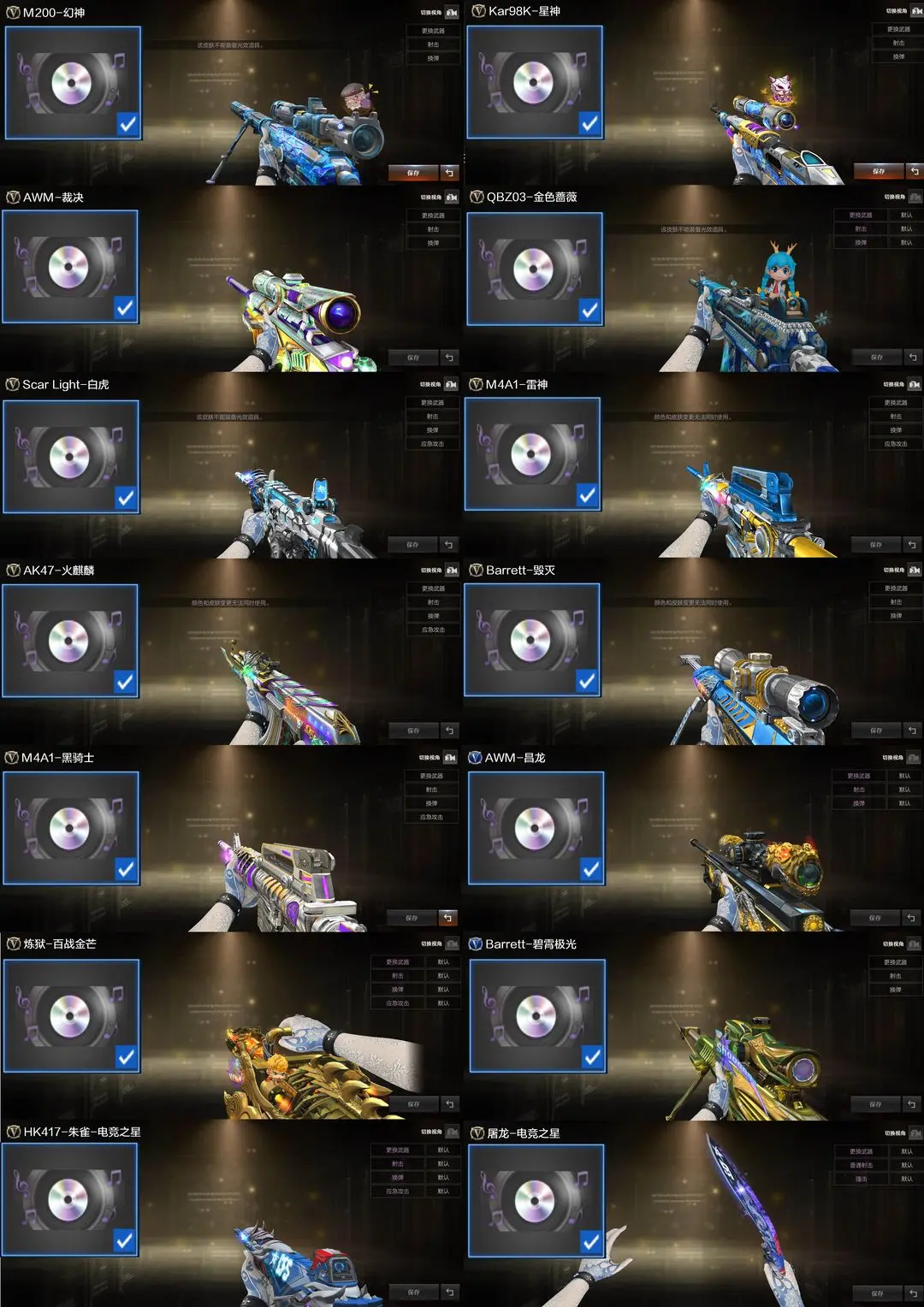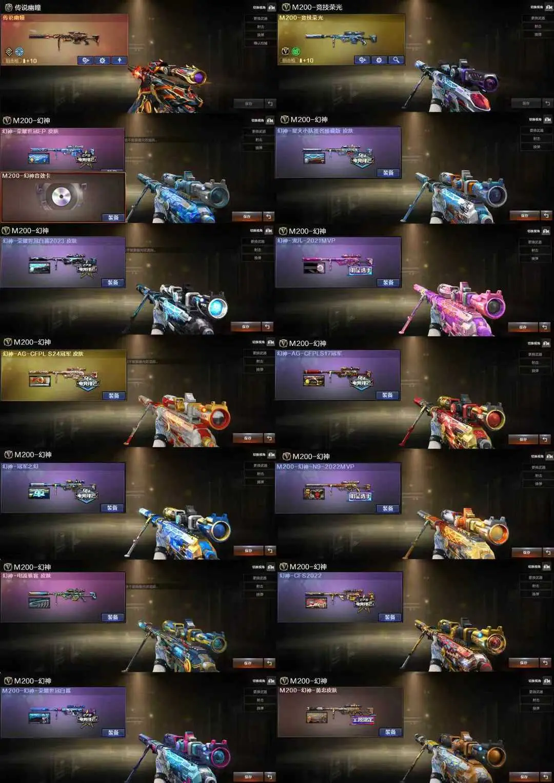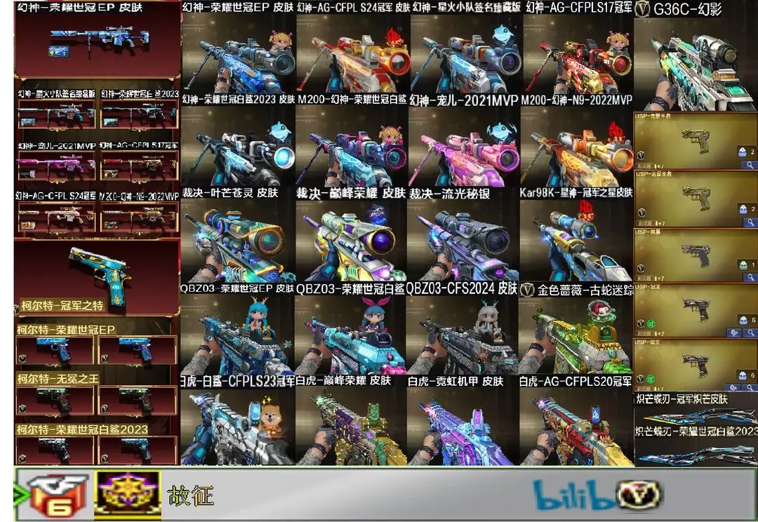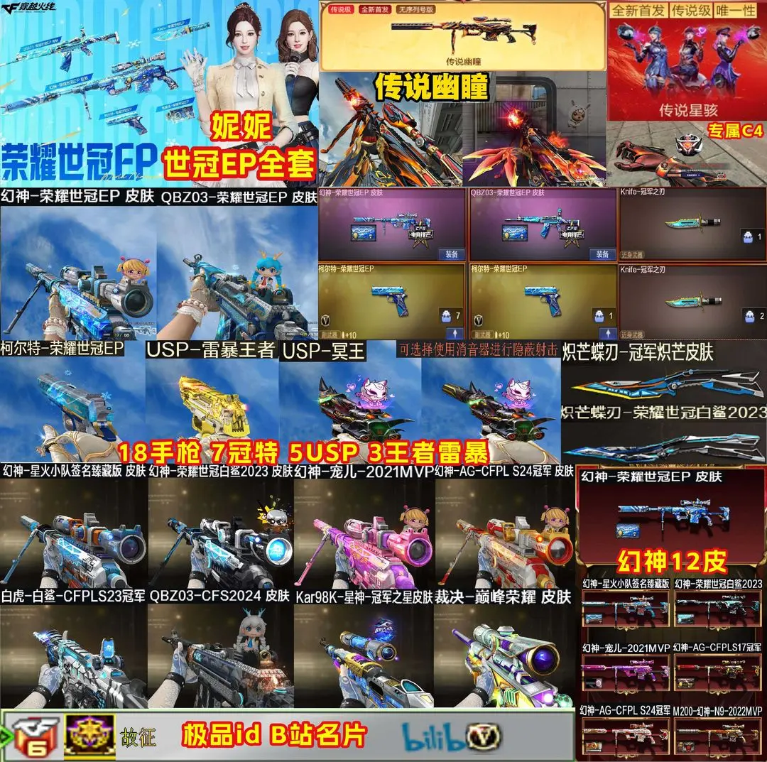 【装备道具】:传说星骇/传说夜影/传说幽瞳/传说破晓❤幻神-荣耀世冠EP 皮肤/幻神-电流骇客 皮肤/幻神-星火小队签名臻藏版/幻神-AG-S24冠军/幻神-黄忠/幻神-荣耀世冠白鲨2023/幻神-N9-MVP/幻神-宠儿-2021MVP/幻神-冠军之幻/幻神-AG冠军/幻神-CFS2022/98K-星神-冠军之星/星神-璀璨/裁决-叶芒苍灵/裁决-流光秘银/裁决-巅峰荣耀/雷神-传奇N9/荣耀之魄/白虎-白鲨-CFPLS23冠军/白虎-霓虹机甲 皮肤/白虎-巅峰荣耀 皮肤/白虎-AG-CFPLS20冠军/QBZ03-荣耀世冠EP 皮肤/QBZ03-CFS2024 皮肤/QBZ03-荣耀世冠白鲨/❤电竞教官-云悠悠/妮妮/晴雅/隼/❤竞技荣光套装/USP-雷暴王者(2)/异变清道夫-蛇影双骄/柯尔特-冠军之特/柯尔特-竞技荣光(2)/USP-雷暴/白鲨炽芒蝶刃冠军炽芒/朱雀-电竞之星/G36C-幻影/炼狱-百战金芒/柯尔特-荣耀世冠EP(2)/USP-冥王(2)/Anaconda-玄豹/柯尔特-荣耀世冠白鲨2023/柯尔特-无冕之王(2)/幻神音效卡/星神音效卡/白虎音效卡/裁决音效卡