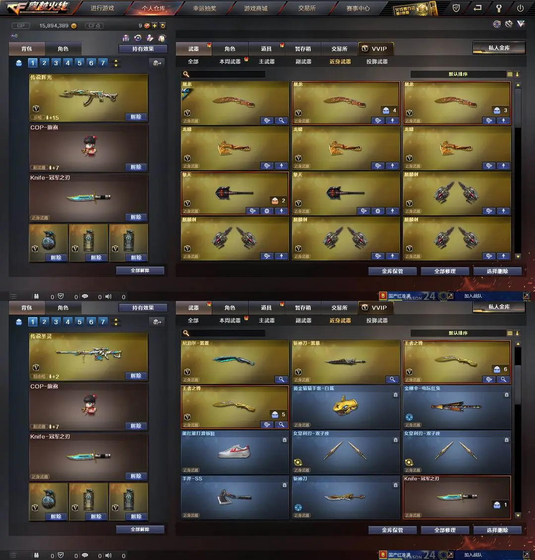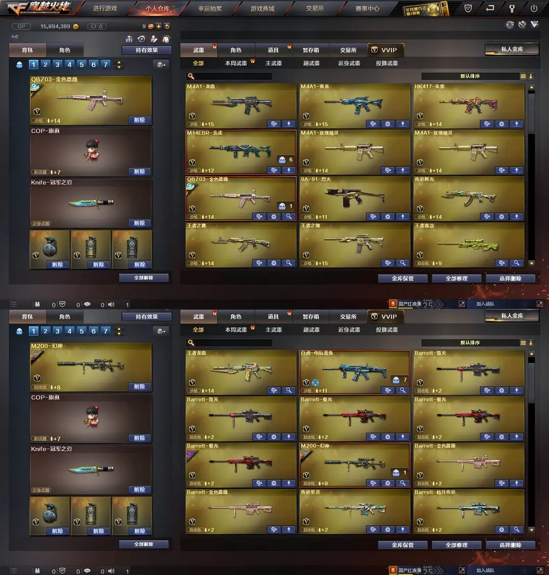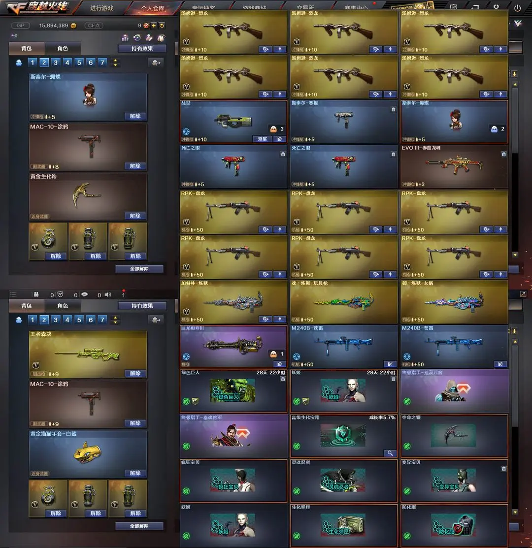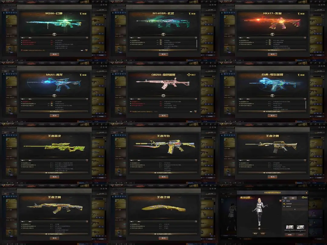 【装备道具】:传说女帝★传说辉光★传说圣灵★黄忠幻神皮肤★幻神音效卡★M200-幻神★QBZ-冠军之薇★Knife-冠军之刃★火麒麟-冠军之心★雷神-冠军之魄★黑骑士-冠军之势★M14EBR-玄武★HK417-朱雀★M4A1-青龙★白虎电玩蓝兔★QBZ-金色蔷薇★觉醒王者森决★觉醒王者龙血★王者之魄王者之翼王者之幻王者之锋王者之瞳★7音效卡★幻神音效卡★金色蔷薇qbz音效卡★毁灭音效卡★雷神音效卡★火麒麟音效卡★黑骑士音效卡★黑龙音效卡★裁决音效卡★雷神M4A1-战神赵云★雷神-荣耀之魄★屠龙-荣耀之锋★黑骑士耀金★尼泊尔雷霆★COP-旗袍★炫金火麒麟炫金黑龙★炫金超新星★炫金天神炫金修罗★阐释者★6烈龙6盘龙炼狱★斯泰尔蝴蝶枪★巨龙咆哮★征服者★黄金猫猫手套白鲨★MAC-10-涂鸦★黄金生化钩★灵狐卡片★传奇段位★生化弹夹防化服变异宝贝死亡之眼对讲机不退包★佣兵觉醒无需换弹手斧镜减速雷★捕食者之眼查看血量★