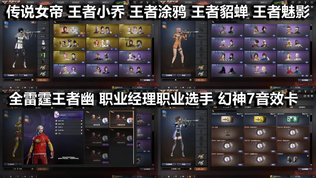 【装备道具】:传说女帝★传说圣灵★传说暗裔★98k星神★幻神冠军之幻★冠军之心★荣耀世冠雷神★荣耀世冠柯尔特★M200幻神★幻神音效卡★7音效卡★朱雀★白虎★青龙★朱雀大炮★佣兵觉醒无需换弹★捕食者之眼★生化觉醒★传奇石头横秒之巅★雷神LGD冠军皮肤★雷神杨戬★毁灭SV冠军皮肤★毁灭战神张飞★雷神CFS2019★火麒麟盘古★华夏之心★火麒麟轻羽★荣耀之魄★荣耀之怒★荣耀之锋★全赛事荣耀皮肤★全雷霆王者幽★大炮雷霆王者★COP雷霆王者★雷霆王者之锋★觉醒王者雷怒王者之决王者蔷薇王者之势王者之光王者之力王者之灵王者之啸王者之击王者之心★王者玲珑小乔★王者涂鸦★王者貂蝉★王者魅影职业经理★职业选手★王者瞳闭月羞花★王者传说零★雷神精英刀锋★白鲨语音包★春雷暴套★USP雷暴★6烈龙6盘龙炼狱裁决雷霆★生化手雷★斯泰尔蝴蝶★MAC-10涂鸦★神圣爆裂者★金刚伞★佣兵觉醒★爆破生化挑战全装━ 【租用须知】: 请勿乱投诉增加撤单率,恶意投诉撤单将永久拉黑。租号前请仔细查看武器账号描