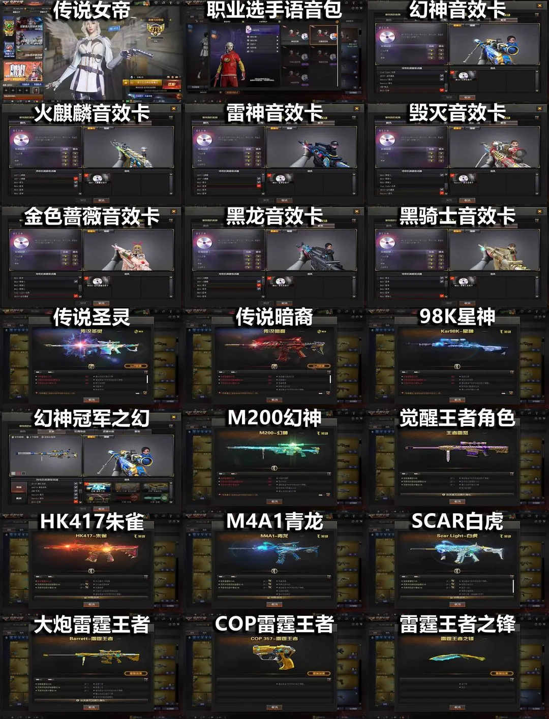 传说女帝圣灵暗裔❤冠军幻神音效卡❤星神白虎Qbz世冠套❤雷暴套全雷霆王者裁决8音❤生化6盘6烈龙蝴蝶