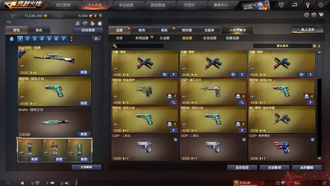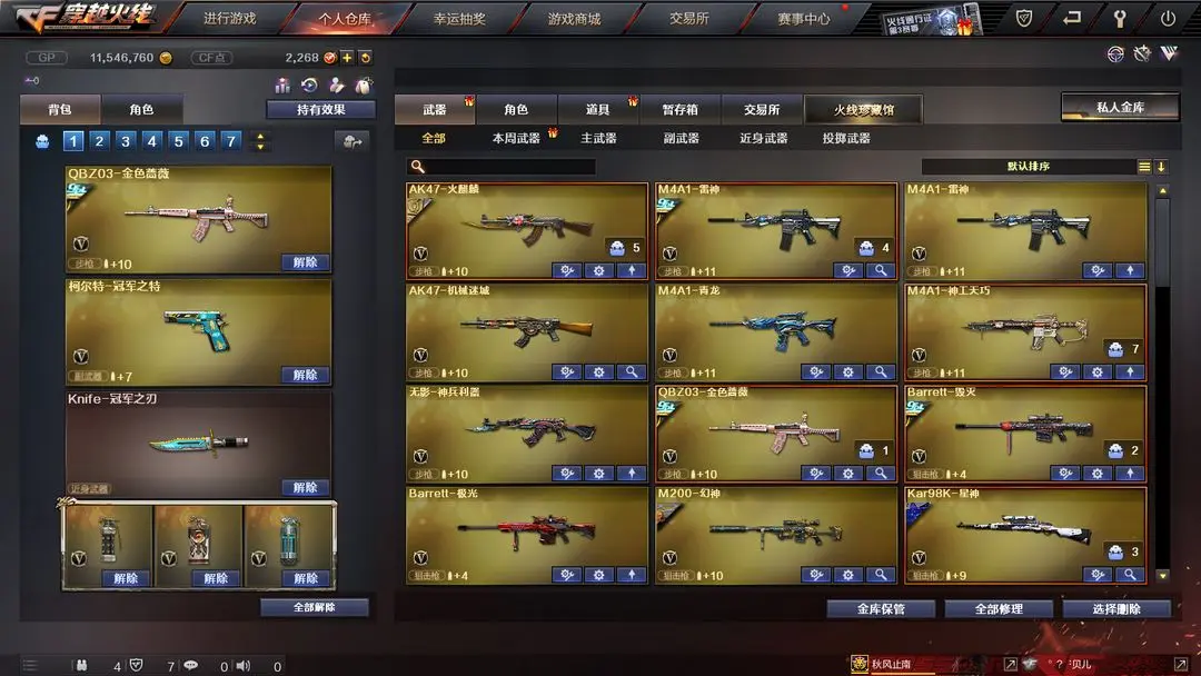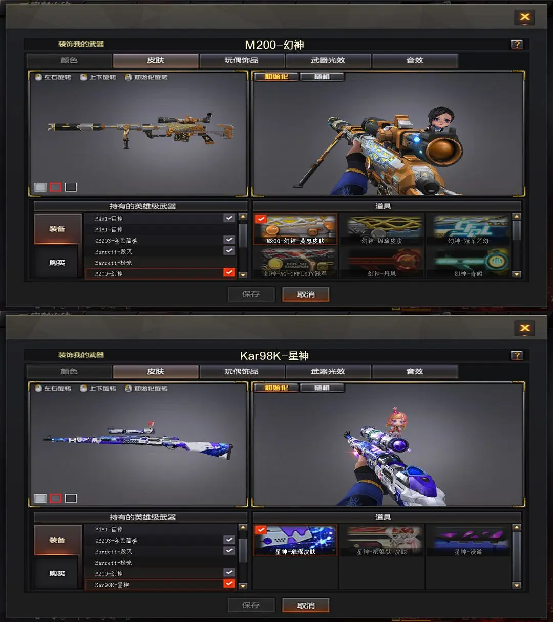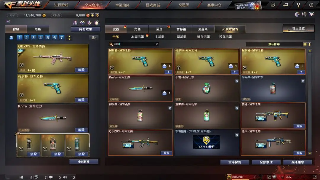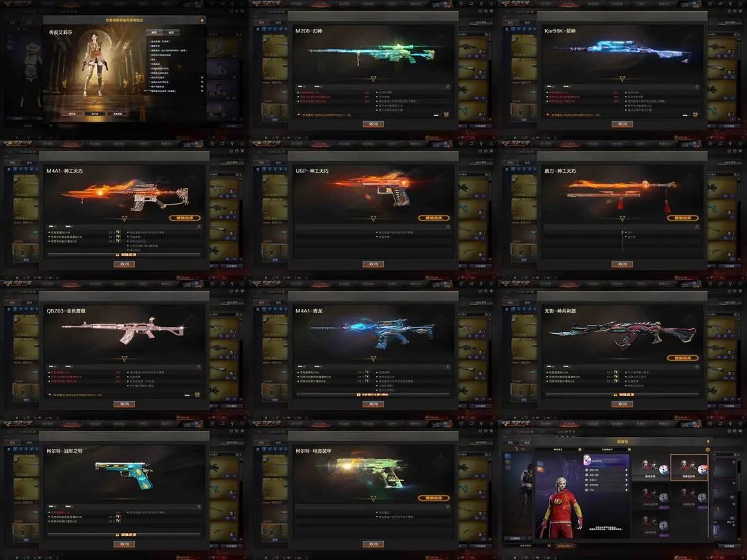【装备道具】:QBZ-冠军之薇★Knife-冠军之刃★柯尔特-3冠军之特★四防传说艾莉莎★冠军之★薇冠军小刀★冠军之特★雷神-冠军之魄★毁灭-冠军之怒★神工天巧套★M4A1-神工天巧★USP神工天巧★唐刀神工天巧★黄忠幻神皮肤★M200-幻神★星神璀璨皮肤★98K星神★荒漠琉璃★幽★火麒麟大唐荣光★毁灭直播专属★火麒麟心动糖果★神兵利器★职业选手★女战神★绝迹语音包★柯尔特-电竞装甲★王者零国色天香★炼狱玩具★毁灭青帝★炼狱掌火★雷霆★金刚伞★变异宝贝死亡对讲机不退包★佣兵觉醒无需换弹手斧镜减速雷★捕食者之眼查看血量★