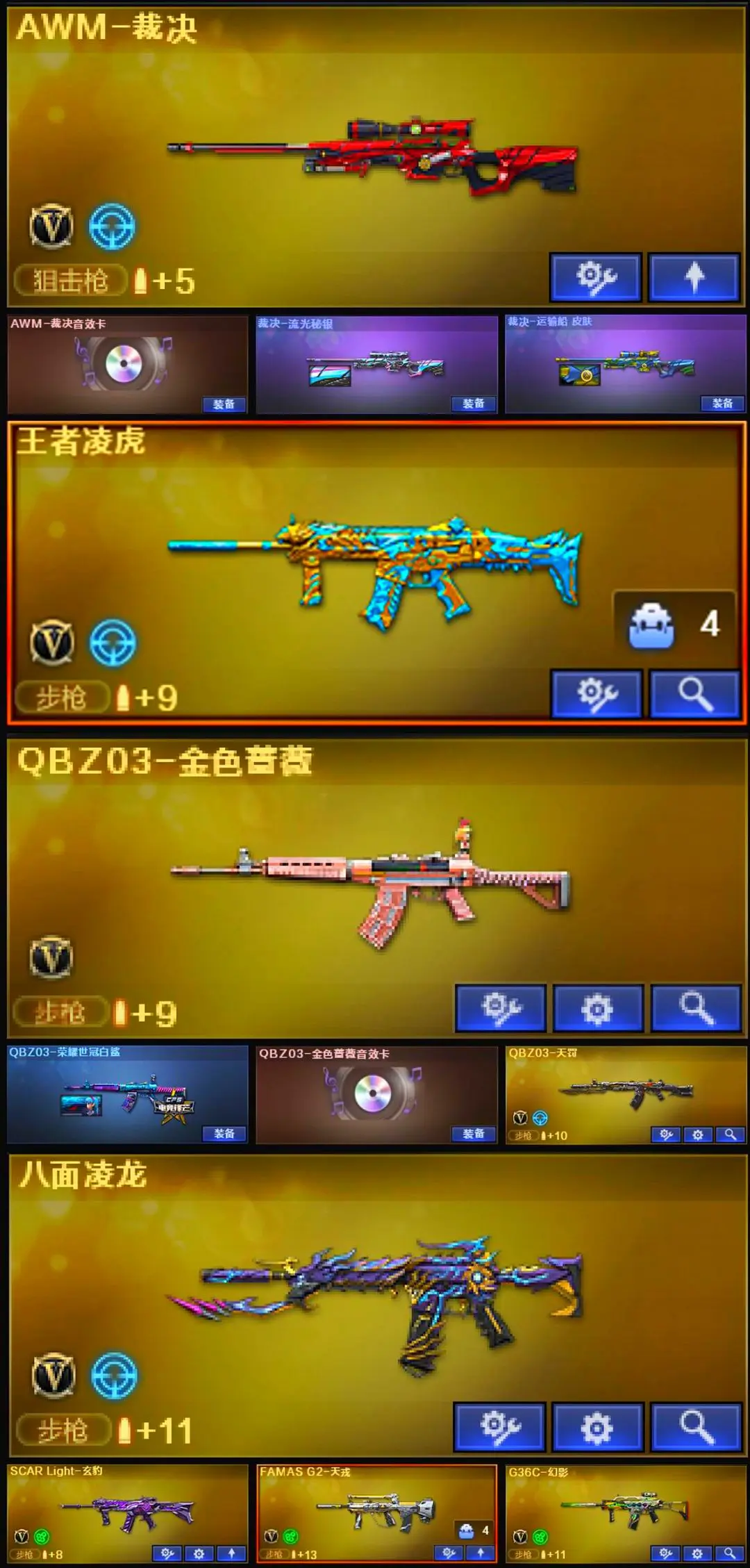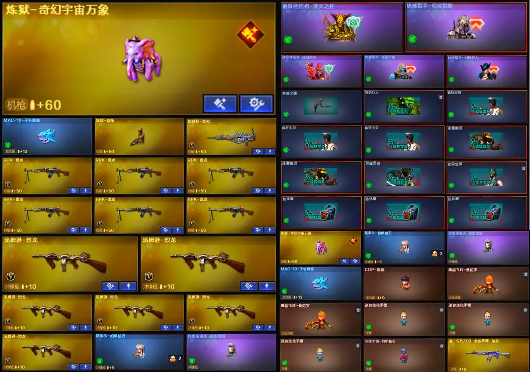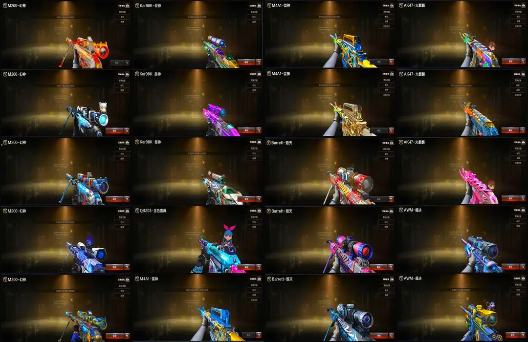 【装备道具】:【幻神三件套】【幻神4皮】【星神三件套】【裁决三件套】【6烈龙】【斯泰尔-枪娘暗刃】【6盘龙】【炼狱-秦师】【传说星骇】【传说圣谕】【M200-幻神】【幻神-AG-CFPL S24冠军】【幻神-荣耀世冠白鲨2023 皮肤】【幻神-星火小队签名臻藏版】【幻神-星耀】【幻神-电流骇客】【幻神音效卡】【Kar98K-星神】【星神-巅峰荣耀】【星神-枪娘默】【星神-破竹】【星神音效卡】【AWM-裁决】【AWM-裁决音效卡】【裁决-流光秘银】【王者凌虎】【QBZ-金色蔷薇】【QBZ-荣耀世冠白鲨】【QBZ03-金色蔷薇音效卡】【QBZ03-天罚】【八面凌龙】【SCAR-玄豹】【FAMAS G2-天戎】【G36C-幻影】【柯尔特-荣耀世冠白鲨2023】【USP-雷暴王者】【USP-冥王】【Anaconda-玄豹】【丛林匕首-玄豹】【宙斯权杖】【炼狱-奇幻宇宙万象】【炼狱-秦师】【加特林-炼狱】【RPK-盘龙】【魂·炼狱-玩具枪】【汤姆逊-烈龙】【斯泰尔-枪娘暗刃】【异变清道夫-蛇影双骄】【MAC-10-千针棘鲨】【炼狱-奇幻宇宙万象】【传说星骇】【玄豹】【关小雨】】【王者-魅影】