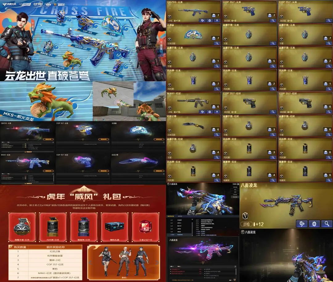 【装备道具】:满级八面凌龙★【挑战九阶段】/可排位/103V/【四传说】/传影煞/传说灵眸/传说梦魇/传说破晓/【幻神三件套】/幻神/幻神音效卡/幻神宠儿/幻神N9/幻神巅峰荣耀/幻神荣耀世冠白鲨/幻神电流骇客/星神/王者星霆/炽芒蝶刃/白虎/白虎热带奇洋/朱雀/朱雀音效卡/0BZ金色蔷薇/0BZ斗鱼平台/OBZ荣耀世冠白鲨/荣耀世冠柯尔特/王者白虎/青龙之魄/凤吟之魄/OBZ天罚/OBZ天罚音效卡/G36C幻影/VSK-94金蚀★影豹幻灵套/云龙套/COP幻灵*2/COP云龙/黄金猫猫手套白鲨★鲨臂【音效卡皮肤】雪神音效卡/黑骑士音效卡/加特林炼狱音效卡★天罚音效卡★朱雀音效卡★毁灭斗鱼/毁灭冠军之怒/毁灭AG冠军/雷神宠儿/雷神传奇N9★雷神航星★火麒麟巅峰荣耀/修罗冠军之魂/屠龙荣耀之锋/屠龙星火燎原/擎天冠军之击★炼狱电子连击★白鲨麒麟刺★M4幻灵★华云龙套★机械姬★晴雅★王者凌霄★王者影豹★鹰★云海玲珑★电竞少女★qbz云龙★6烈龙★异变清道夫★擎天柱★巨龙咆哮★王者白虎★超越mAX★悦蓝惊涛骇浪★变异宝贝死亡对讲机不退包★佣兵觉醒无需换弹手斧镜减速雷★捕食者之眼查看血量★