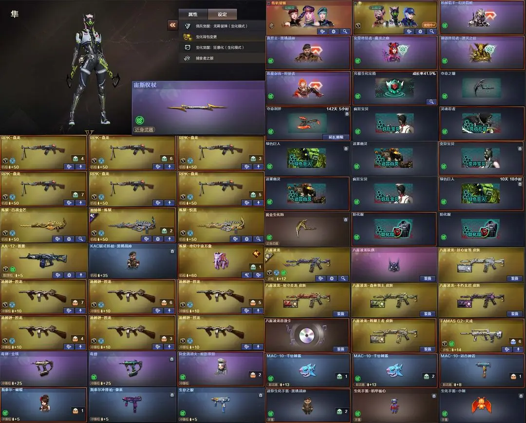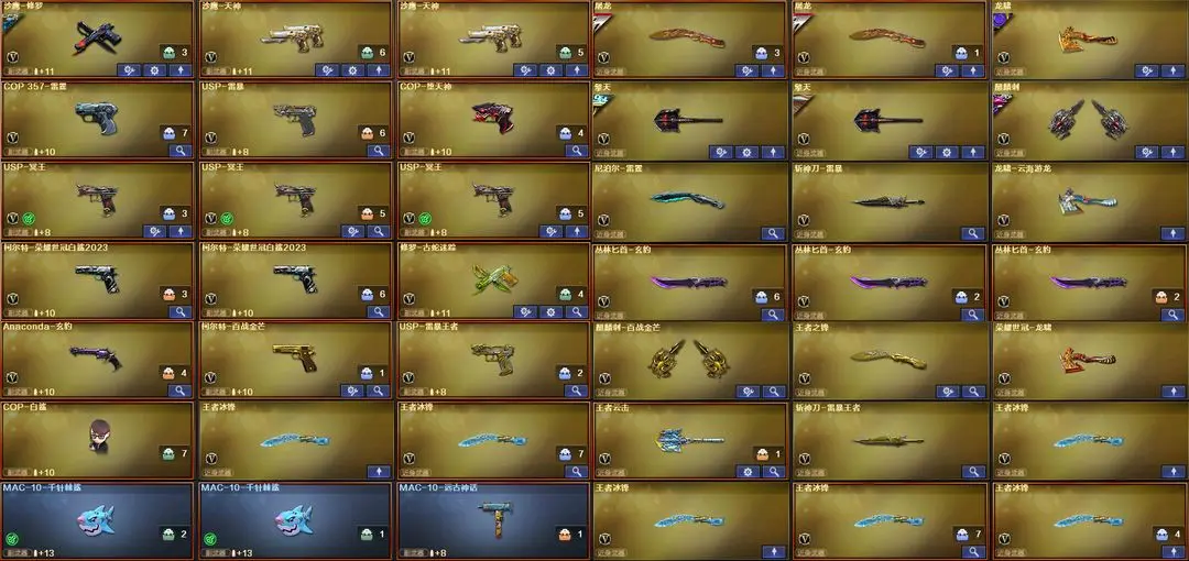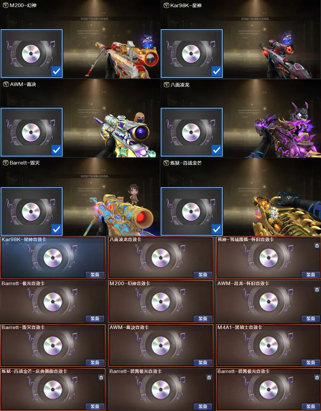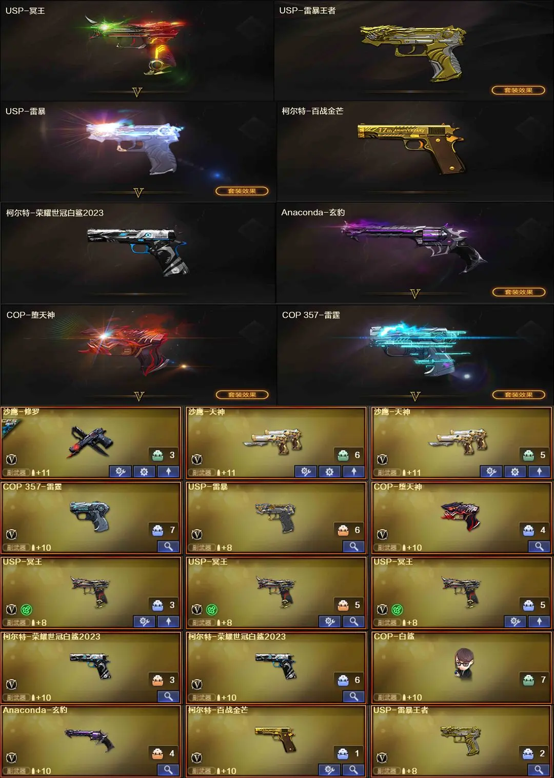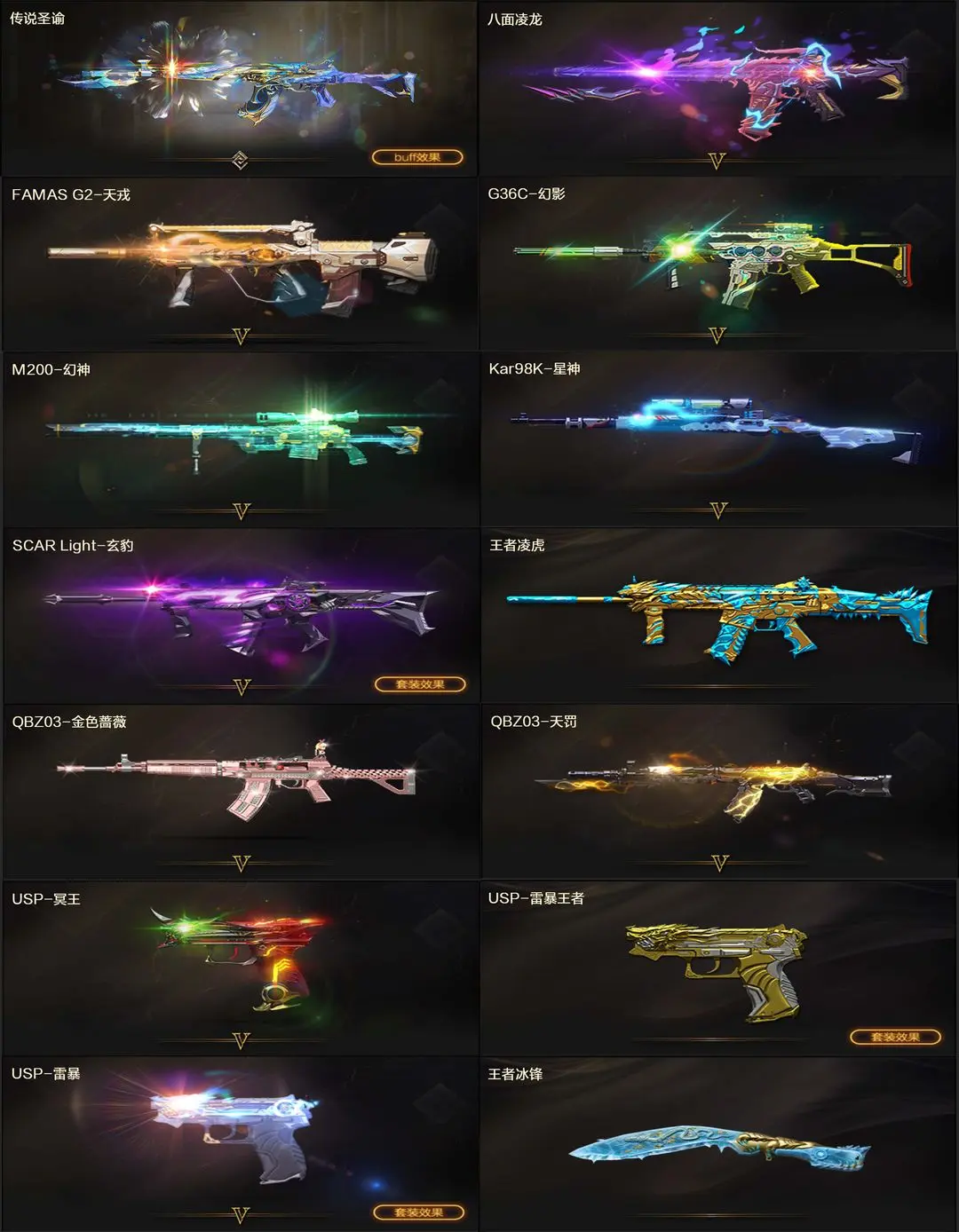 【装备道具】:传说星骇/传说圣谕★幻神-电流骇客 皮肤/幻神-AG-CFPL S24冠军 皮肤/幻神-星耀/星神-黯钢战甲/星神-冠军之星/星神-璀璨/毁灭-定军扬威/裁决-运输船/裁决-巅峰荣耀/火麒麟-巅峰荣耀/雷神-仲达白露/八面凌龙-封心寒雪/八面凌龙-辉耀王者/八面凌龙-星守炎龙/八面凌龙-森林领主/八面凌龙-不朽玄君/白虎-暗星/QBZ03-AG-CFPLS19冠军/QBZ03-金色蔷薇-拼搏★幻神音效卡/星神音效卡/八面凌龙音效卡/毁灭音效卡/裁决音效卡/极光音效卡/炼狱-百战金芒音效卡★QBZ03-天罚/USP-雷暴★SCAR Light-玄豹/FAMAS G2-天戎/八面凌龙/G36C-幻影/★炼狱-百战金芒/柯尔特-百战金芒/USP-冥王(3)/Anaconda-玄豹/柯尔特-荣耀世冠白鲨2023/COP-堕天神/雷霆之契/★王者凌虎/USP-雷暴王者/王者冰锋(4)/★玄豹套装★关小雨/隼/荆棘/战地猎狐/_玄豹/QBZ03-威猛悍鲨/炼狱-奇幻宇宙万象/异变清道夫-蛇影双骄/MAC-10-千针棘鲨/COP-白鲨/茸茸小松狮/屠龙-星耀/炼狱-悦蓝/6烈龙6盘龙