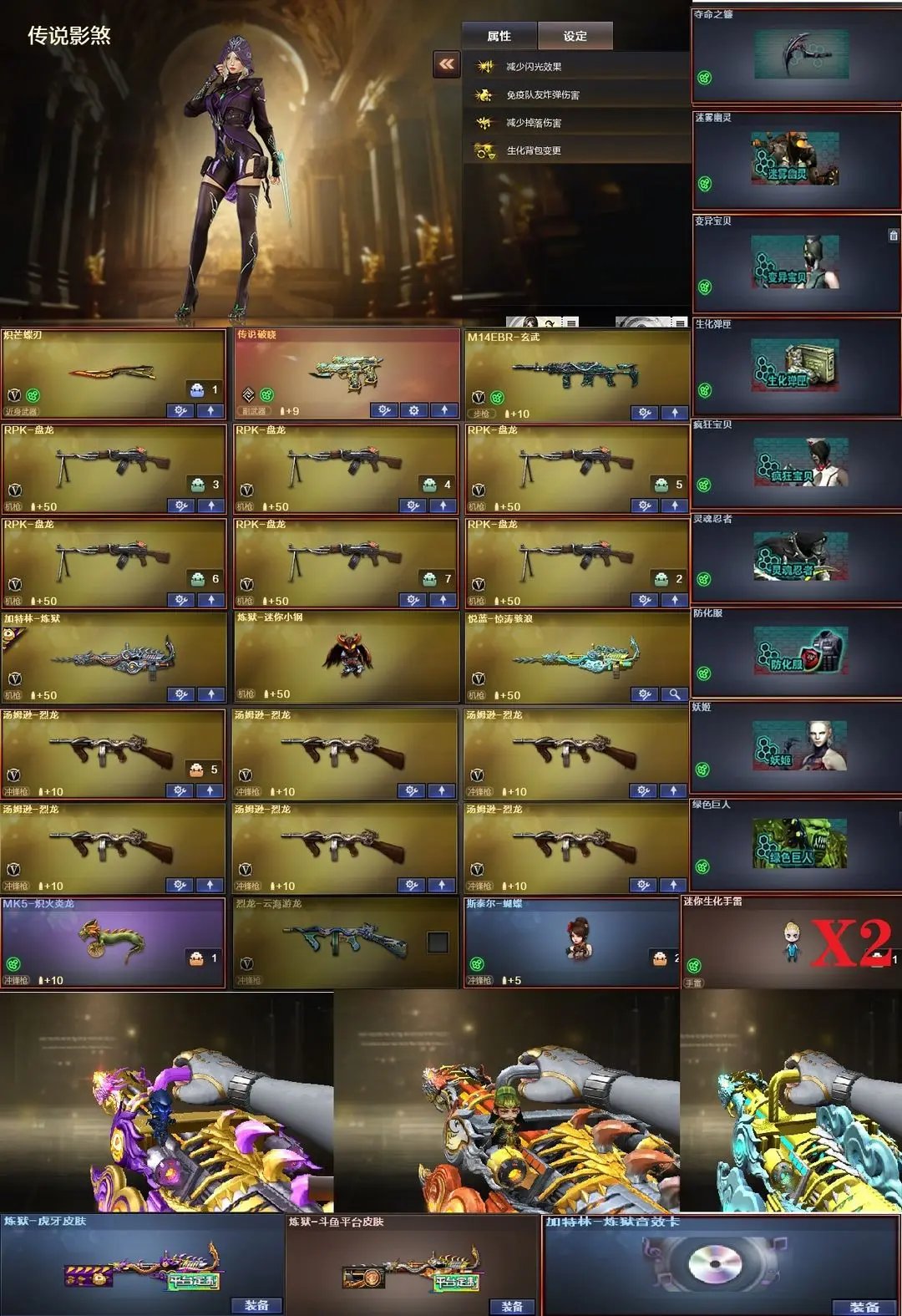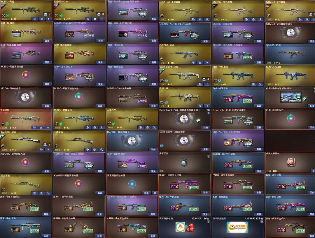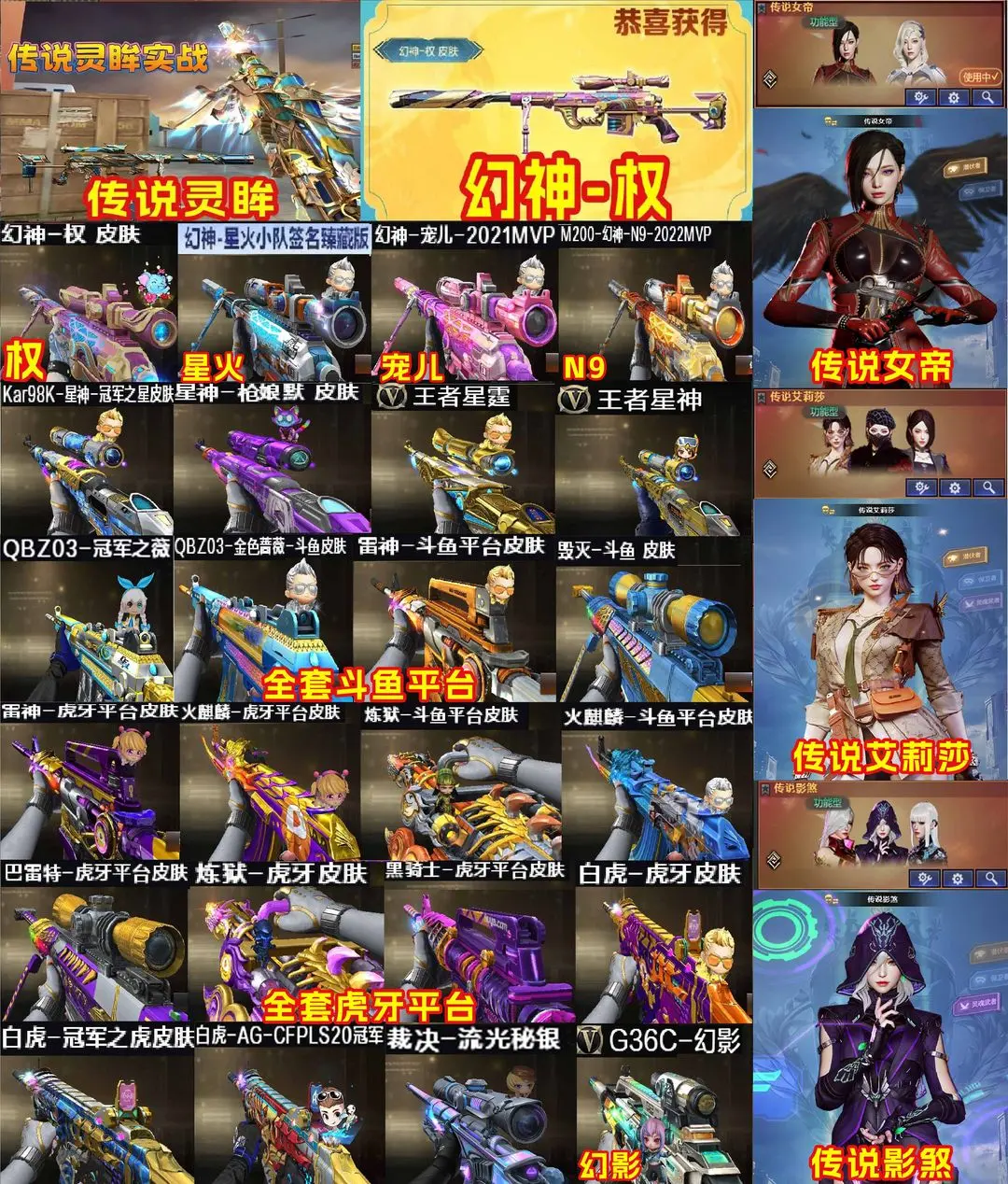 【装备道具】:幻神权皮肤❤传说夜影/传说灵眸/传说影煞/传说女帝/传说艾莉莎/传说破晓❤白虎-电玩蓝兔/白虎之魄❤M14EBR-玄武❤王者星神-觉醒版❤王者蔷薇❤王者星霆❤幻神-电流骇客❤幻神-纸灯龙❤幻神-星火小队签名臻藏版 皮肤❤M200-幻神-黄忠❤M200-幻神-N9-2022MVP❤幻神-宠儿-2021MVP❤幻神-冠军之幻❤幻神-巅峰荣耀❤幻神-CFS2022❤Kar98K-星神-冠军之星❤星神-枪娘默❤极光-高能霹雳❤巴雷特-虎牙❤雷神-虎牙平台❤白虎-虎牙❤火麒麟-虎牙平台❤炼狱-虎牙❤黑骑士-虎牙❤炼狱-虎牙❤擎天-虎牙❤毁灭-斗鱼❤火麒麟-斗鱼❤雷神-斗鱼❤金色蔷薇-斗鱼❤炼狱-斗鱼❤星神音效卡❤幻神音效卡❤极光音效卡❤白虎音效卡❤裁决流光❤幻灵套装/竞技荣光套装/荣耀世冠套装/雷暴套装/云龙套装❤兰-巾帼英雄/电竞教官-云悠悠/华/炫/鹰/隼/影豹/春/晴雅/王者葵-惊若翩鸿/王者影豹/王者潘多拉/王者春/王者-魅影/王者-瞳-闭月羞花/暗黑审判/女主播/职业选手/灵狐者-职业经理❤炼狱-迷你小钢❤斯泰尔-蝴蝶❤MK5-炽火炎龙❤6烈龙6盘龙炼狱❤炼狱皮肤