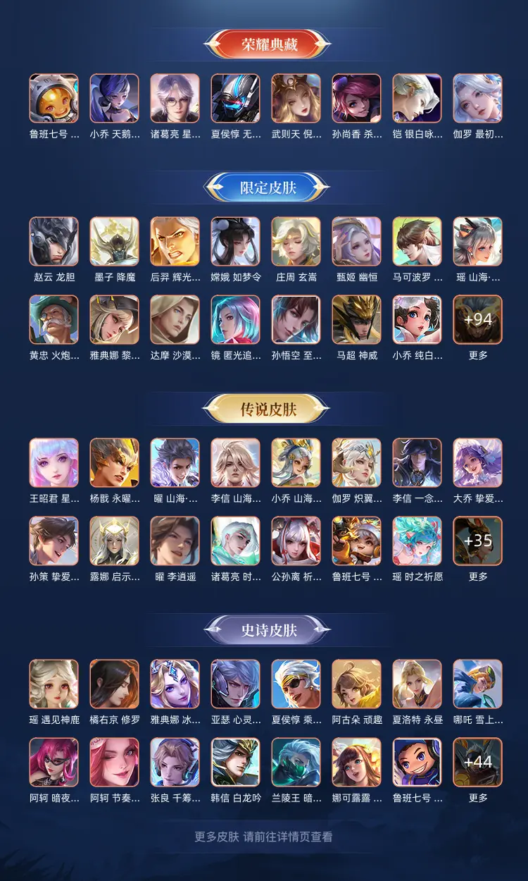 本游戏账号: ,英雄多,皮肤多。典藏皮肤8个,感受典藏皮肤带来的优质体验快感,FMVP皮肤7个,尽情享受FMVP皮肤带来的主角光环, 私人所属英雄皮肤有:孙尚香 杀手不太冷||诸葛亮 星域神启||武则天 倪克斯神谕||夏侯惇 无限飓风号||鲁班七号 星空梦想||小乔 天鹅之梦||铠 银白咏叹调伽罗 太华||伽罗 炽翼辉光||公孙离 祈雪灵祝||公孙离 记忆之芯||亚瑟 追逃游戏||兰陵王 默契交锋||马可波罗 深海之息||宫本武藏 地狱之眼||百里守约 碎云||杨戬 永曜之星||梦奇 胖达荣荣||达摩 黄金狮子座||周瑜 音你心动||李信 一念神魔||李信 山海·炽霜斩||孙尚香 音你闪耀||孙尚香 末日机甲||孙尚香 异界灵契||关羽 武圣||李白 诗剑行||妲己 青丘·九尾||诸葛亮 时雨天司||诸葛亮 武陵仙君||上官婉儿 神器·万象笔||孙悟空 齐天大圣||孙悟空 零号·赤焰||安琪拉 追逃游戏||李元芳 飞鸢探春||大乔 挚爱花嫁||墨子 黄金天蝎座||狄仁