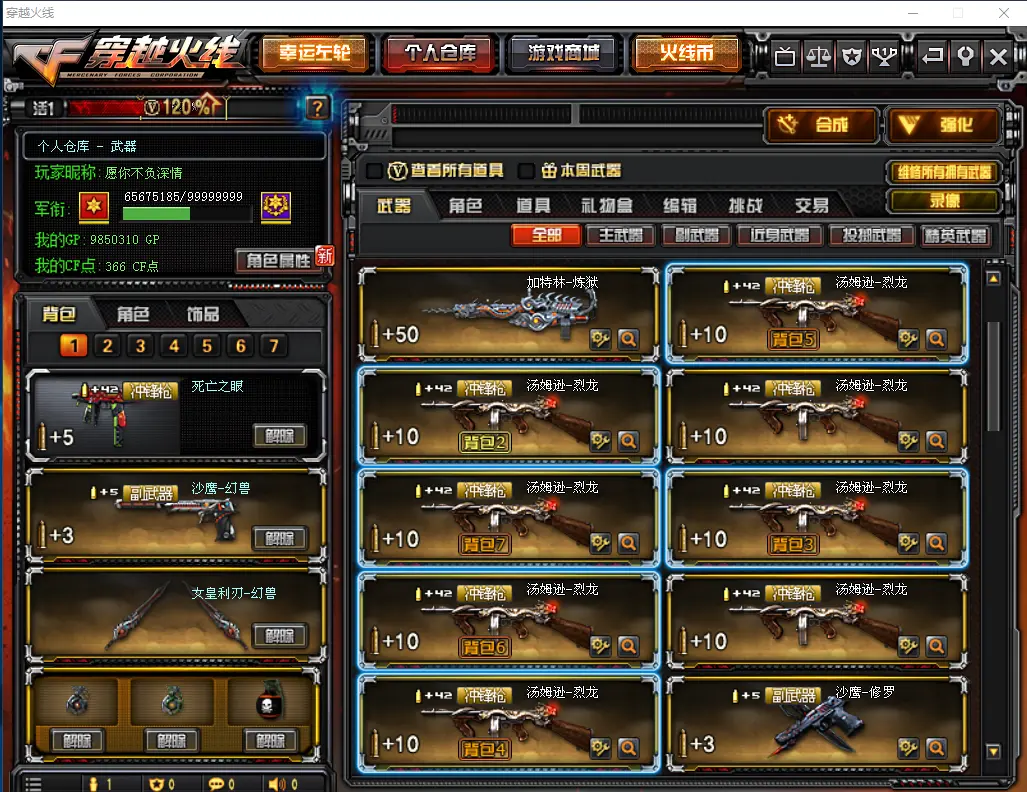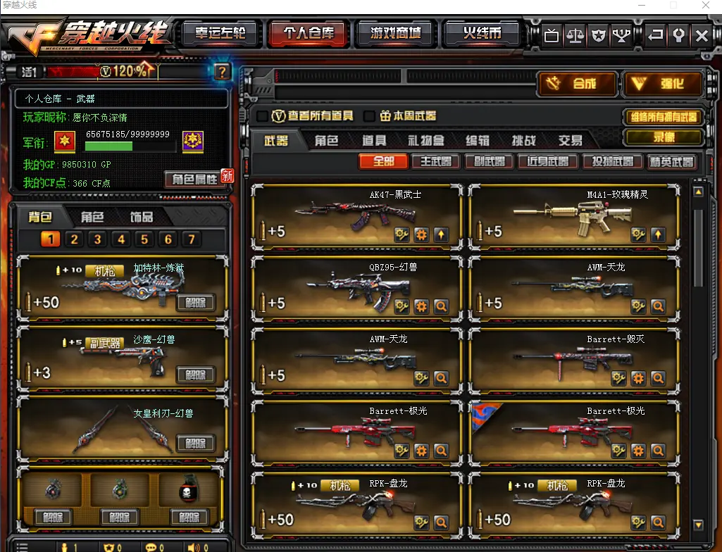 【VIP6 英雄:79 王者:2】加特林-炼狱☆堕天使☆AK47-火麒麟☆生化弹匣☆不要毁号