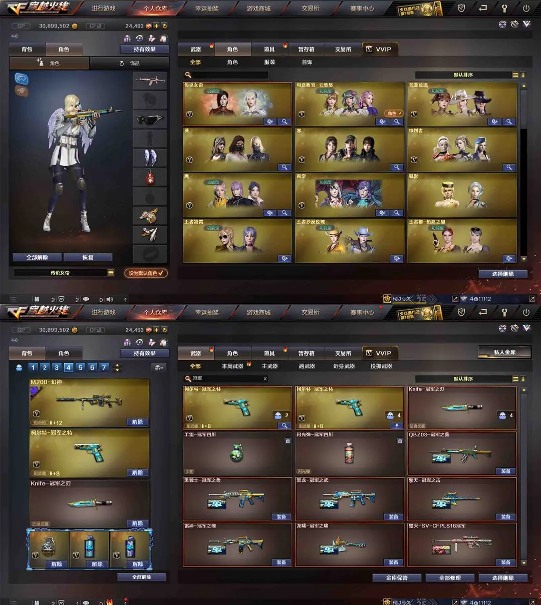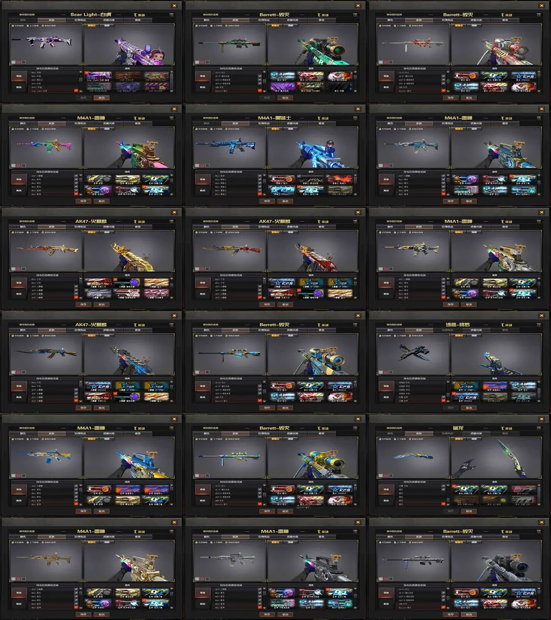 【装备道具】:传说女帝★鹰★传说辉光★传说暗裔★传说圣灵★QBZ-冠军之薇★Knife-冠军之刃★柯尔特-双冠军之特★巅峰荣耀幻神皮肤★2022幻神皮肤★黄忠幻神皮肤★M200-幻神★王者幻神★王者星神★王者蔷薇★王者霜心★雨棠★云悠悠★竞技荣光套★M14EBR-玄武★SCAR-白虎★白虎暗星★QBZ-金色蔷薇★荣耀世冠火麒麟★柯尔特-荣耀世冠★王者森决★柯尔特-电竞装甲★USP雷暴★王者沙漠玫瑰★荒漠琉璃★王者凌霄★qbz音效卡★毁灭音效卡★火麒麟音效卡★雷神音效卡★黑骑士音效卡★黑骑士地狱火★火麒麟AG战队★火麒麟华夏之心★黑骑士CFS2021★火麒麟巅峰荣耀★虎将雷神★火麒麟CFS2018★毁灭CFS2018★雷神-传奇N9★火麒麟盘口★雷神星空★毁灭星空★荣耀之怒★荣耀之魄★荣耀之锋★火麒麟白虎★冠军之武★冠军之势★冠军之啸★冠军之击★M4战神赵云★毁灭SV冠军皮肤★火麒麟枪娘凯萨林★雷神耀金★破空枪刃夜魔★COP雷霆王者★金色小号★全王者★6烈龙6盘龙炼狱★炼狱迷你小钢★斯泰尔蝴蝶★荣耀之证卡牌★变异宝贝死亡对讲机不退包★佣兵觉醒无需换弹手斧镜减速雷★捕食者之眼查看血量★