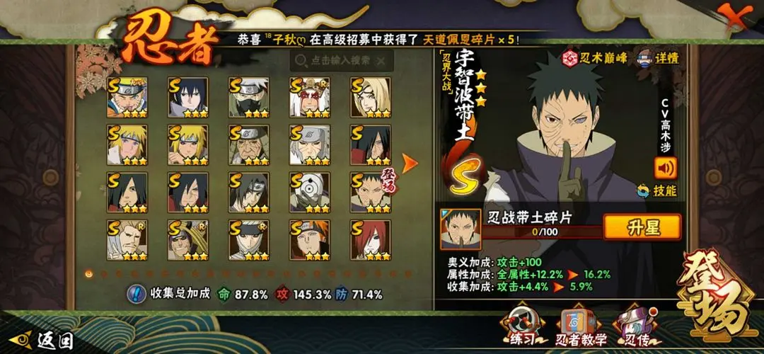 忍者:116位忍者❤️16S忍★17A忍★