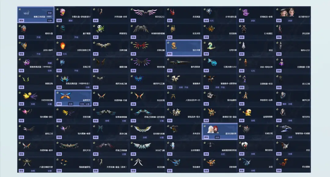宠物-星梦幻灵(狂怒-红莲、诡谲-蚀天、生息-启蕴、不朽-圣御、破妄-镇魔)异械回廊、异械回廊-深星蚀藤、黑晶双擎-凛冬之心、聚宝地台-深寒钻井、影刃潜灵臂铠-奈特圣痕、三英雄臂铠、英雄璃鸢、英雄掘金-赛特、英雄大魔导师-艳后、变身女英雄-凌霜、变身女英雄-龙曦、变身女英雄-绫羽、圣翼魅影双姝、神冕圣翼贝露菲尔、幽冥魅影塞菲莉娅、铁血暴君、侠影锋棱、