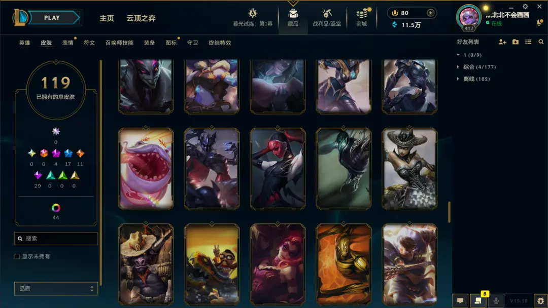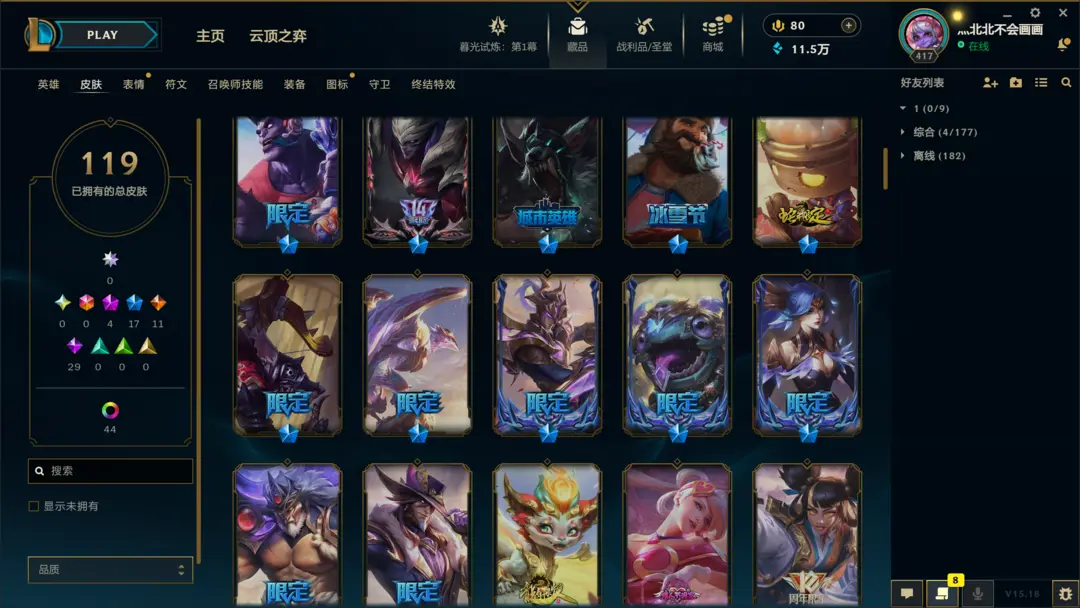 段位准█400皮肤〓10至臻海克斯〓赵云玉剑〓黑色亚索〓全胜利系列