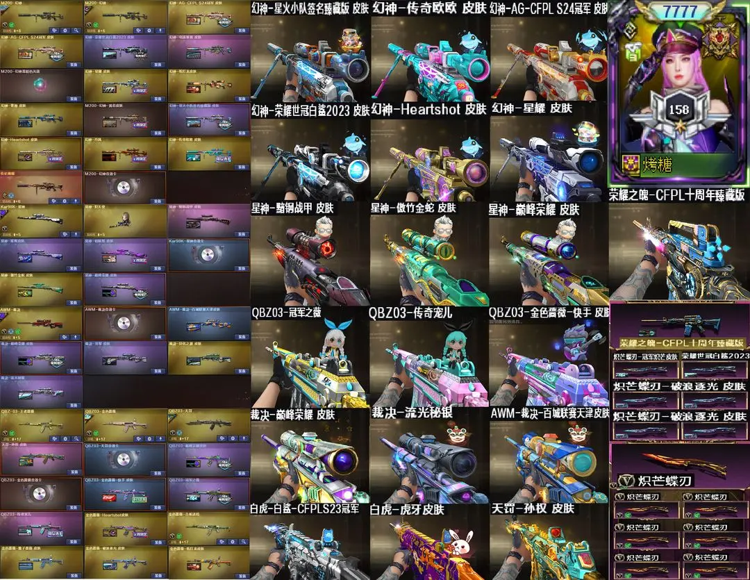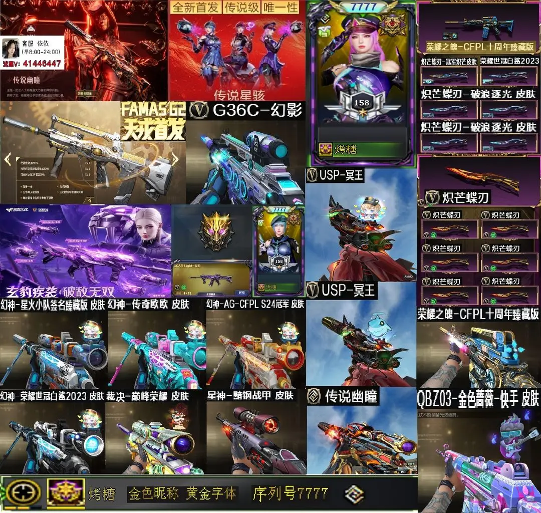 【装备道具】传说星骇/传说辉光(3)/序列号豹子传说辉光/传说夜影/传说幽瞳/传说幽冥/幻神-Heartshot /幻神-电流骇客/幻神-纸灯龙/幻神-星火小队签名臻藏版/幻神-AG-S24冠军/幻神-欧欧/M200-幻神-黄忠/幻神-荣耀世冠白鲨2023/幻神-曹操/幻神-丹凤/幻神-星耀/星神-黯钢战甲/星神-巅峰荣耀/星神-傲竹金蛇/星神-枪娘默/星神-璀璨/裁决-流光秘银/裁决-异化之源/AWM-裁决-百城联赛天津/裁决-巅峰荣耀/裁决-羽掣/雷神-虎牙平台/白虎-白鲨/荣耀之魄-CFPL十周年臻藏版/幻影-破浪逐光/金色蔷薇-量子蔷薇/金色蔷薇-破浪逐光 /金色蔷薇-Heartshot/金色蔷薇-纸灯龙/白虎-白鲨-CFPLS23冠军/白虎-虎牙/白虎-暗星/天罚-孙权/QBZ-巅峰荣耀/QBZ-冠军之薇/QBZ-传奇宠儿/QBZ-金色蔷薇-快手❤堕天神套装/竞技荣光套装/玄豹套装❤王者玄武/王者雷影/王者星光/炽芒蝶刃-破浪逐光/炽芒蝶刃-荣耀世冠白鲨2023/炽芒蝶刃-冠军炽芒/幻神音效卡/星神音效卡/USP-冥王/FAMAS G2-天戎/G36C-幻影/QBZ-银翼游侠
