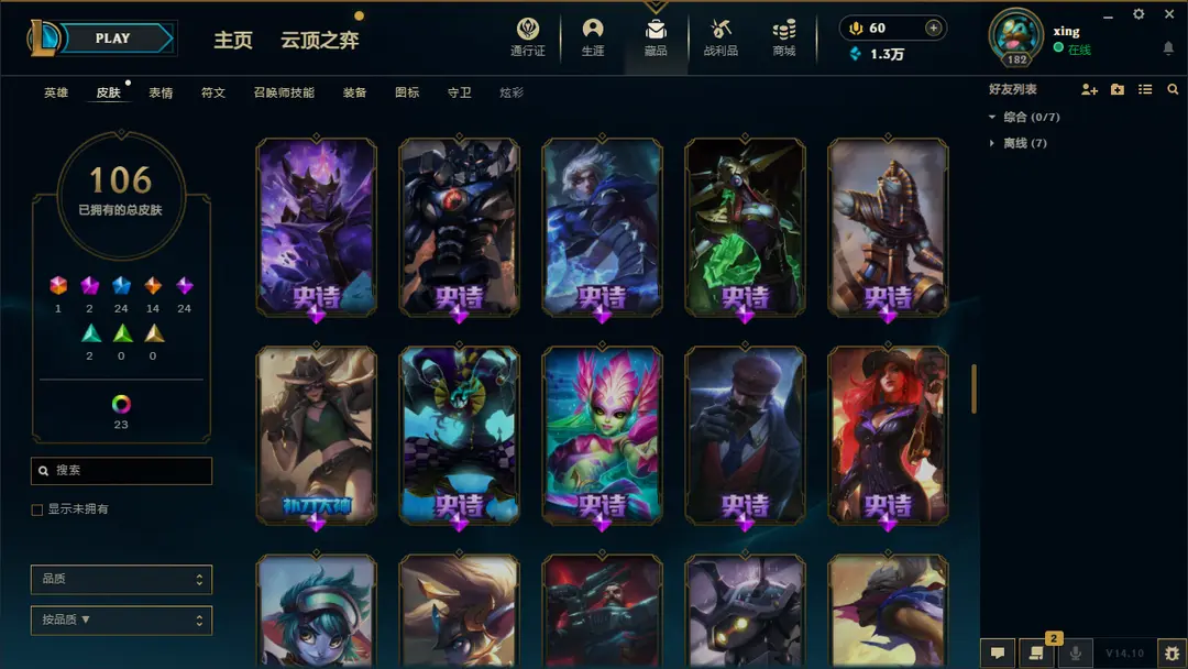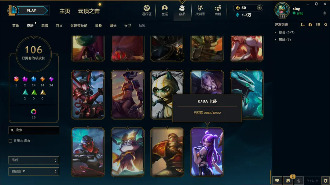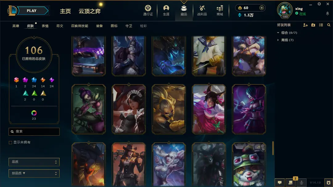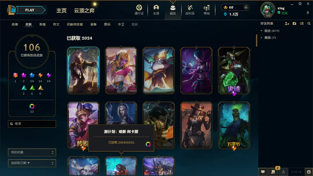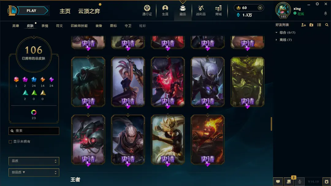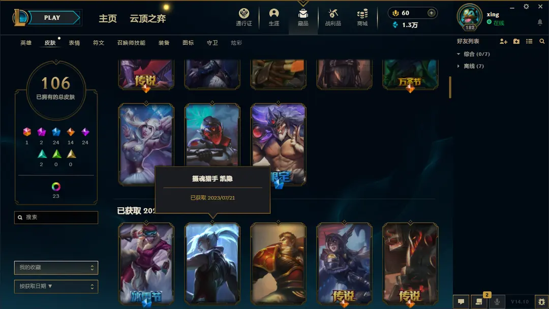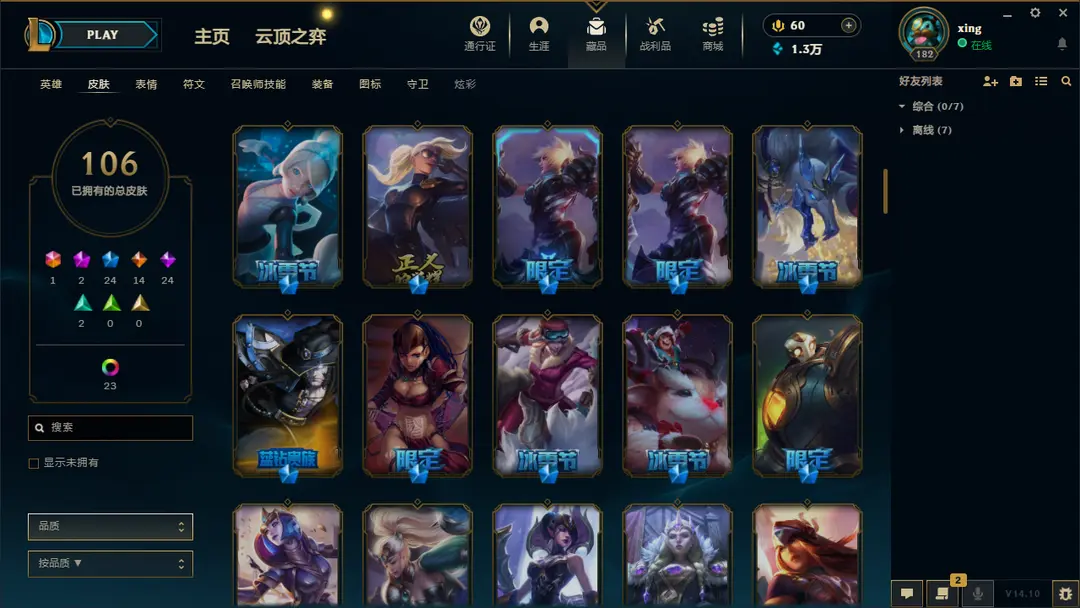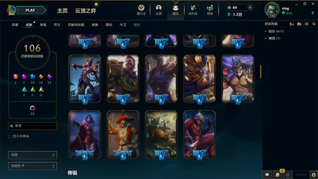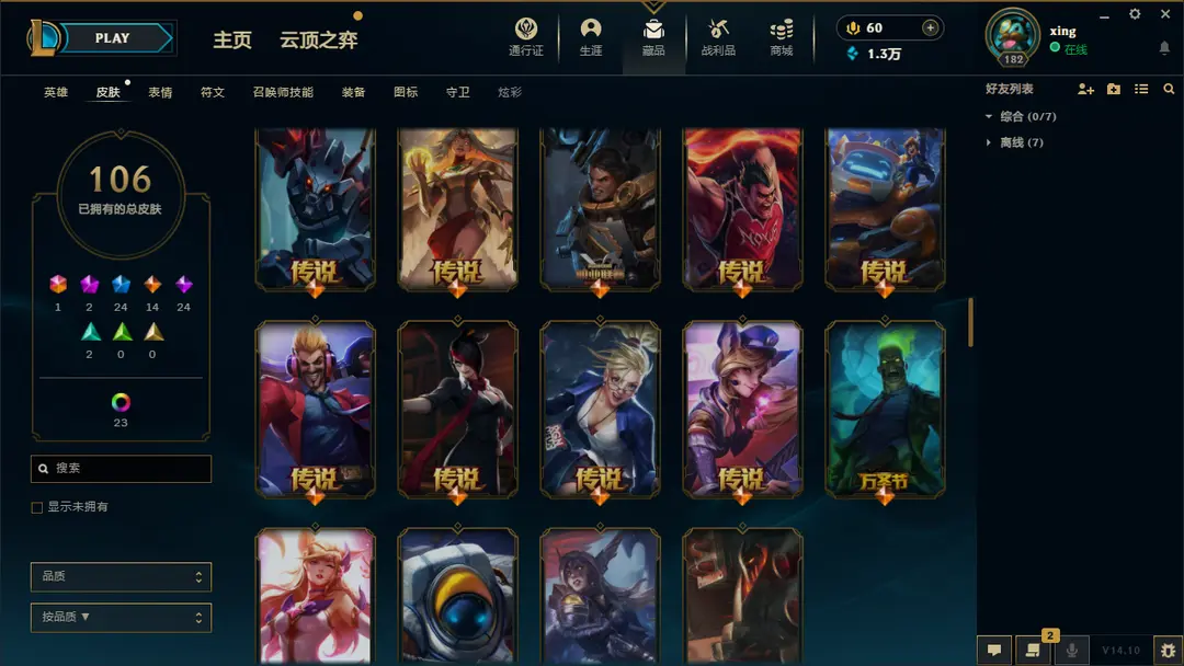 | 英雄: 170 | 皮肤: 161 |