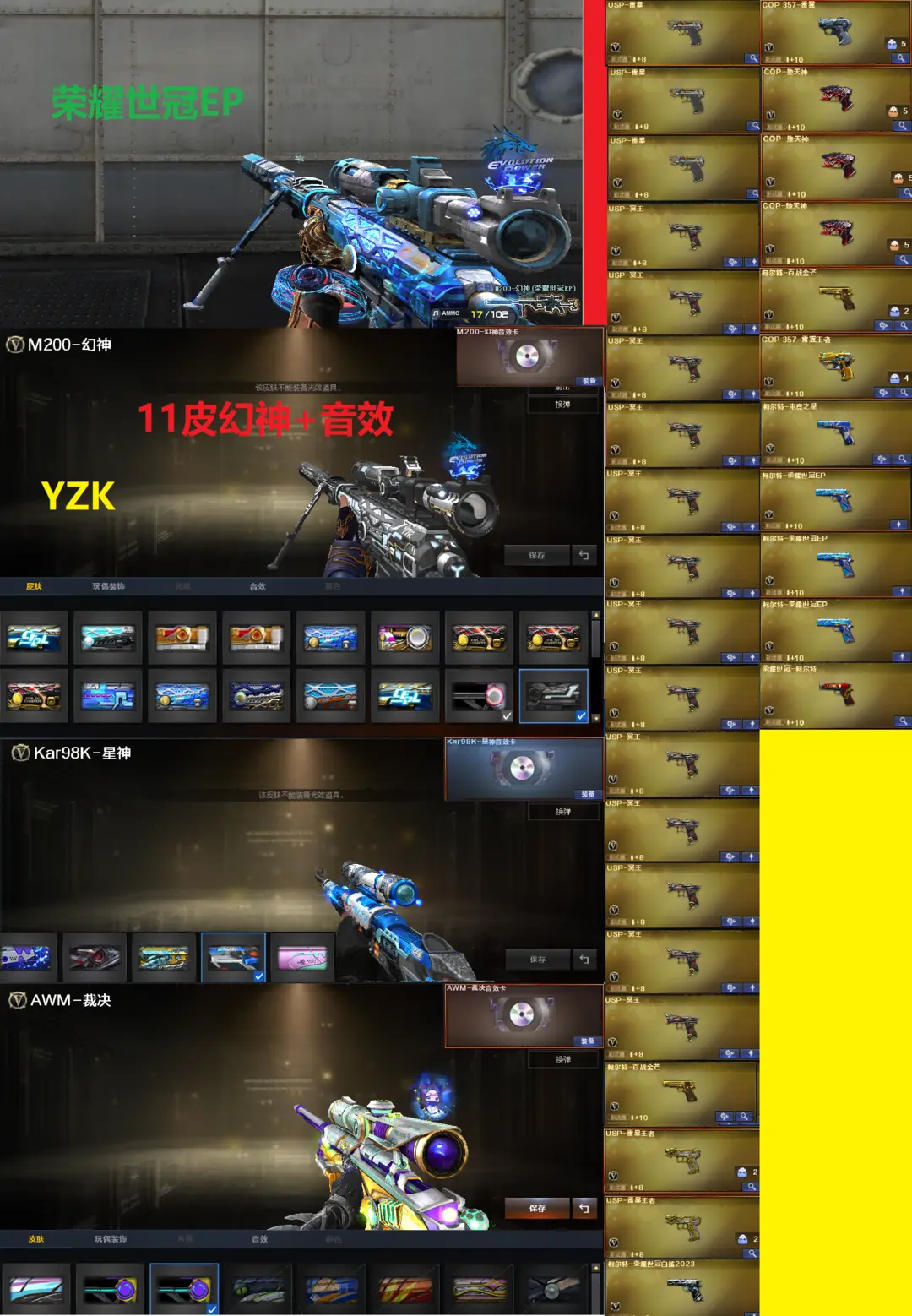 排位:可以、、、、、、、生化四防精品(生化变更背包、可以查看时生化僵尸血量):无需换弹、6烈、2盘、6炼狱小钢、炼狱-泡泡象、八面凌龙、斯太尔蝴蝶、双清道夫-小人枪、双面神、死亡之眼、MAC涂鸦、5把炽芒蝶刃、3个生化减速雷、超级对讲机、全部弹匣、、、、、、、、、爆破四防:11皮幻神音效(YZK、KZ、EP荣耀、星火小队、宠儿、23白鲨、24AG冠军、AG、冠军之幻、电竞之星、动感闪耀皮肤)、98K星神、全手枪、G36幻影、加利尔ACE-天袭、FAMAS G2-天戎、九霄圣角、、、全音效、、全套手雷、、、神威莲华、传说女帝、传说星骇、荆棘、妮妮、、、、极品号