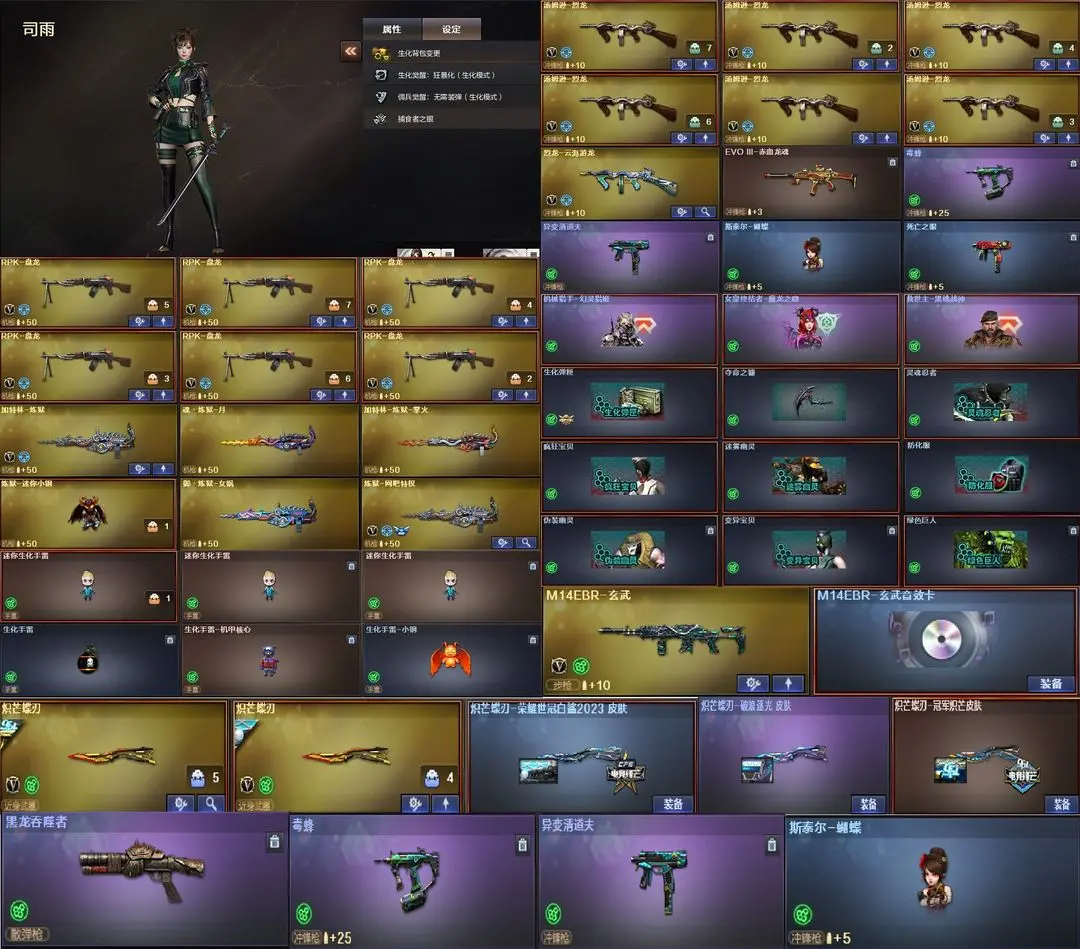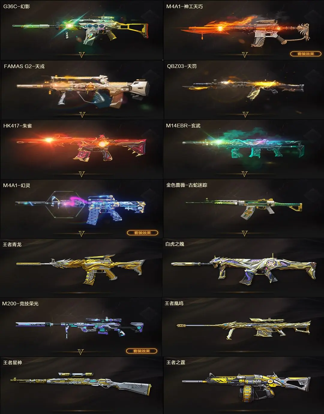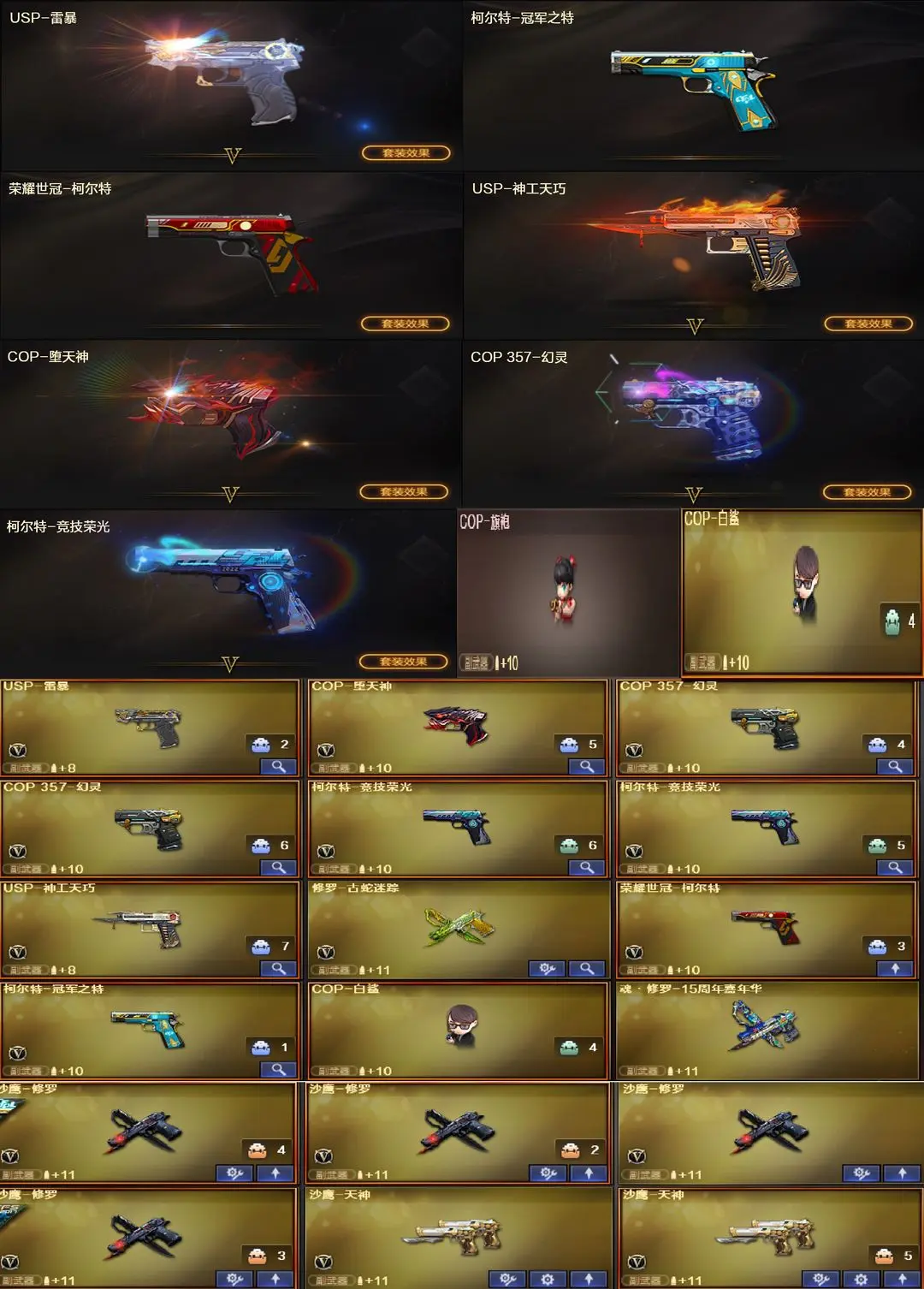 【装备道具】:传说艾莉莎/传说夜影/传说幽瞳/传说灵眸★幻神-电流骇客 皮肤/幻神-纸灯龙/幻神-星火小队签名臻藏版/幻神-AG-CFPL S24冠军/幻神-欧欧/幻神-荣耀世冠白鲨2023 皮肤/幻神-青鹤/幻神-降龙/幻神-CFS2022/星神-巅峰荣耀/Kar98K-星神-AG-CFPLS21冠军/星神-漫游/裁决-流光秘银/裁决-巅峰荣耀/金色蔷薇-破浪逐光/白虎-白鲨-CFPLS23冠军/白虎-大汉风骨/白虎-巅峰荣耀/白虎-AG-CFPLS20冠军/QBZ03-CFS2024/QBZ03-AG-CFPLS19冠军/QBZ03-冠军之薇/QBZ03-传奇宠儿/屠龙-破浪逐光/炽芒蝶刃-破浪逐光/炽芒蝶刃-荣耀世冠白鲨2023/炽芒蝶刃-冠军炽芒/FAMAS G2-天戎/G36C-幻影/荣耀世冠-柯尔特/柯尔特-冠军之特/柯尔特-竞技荣光(2)/USP-雷暴/USP-神工天巧/白虎之魄/★白虎-奇幻星空松狮/炼狱-迷你小钢/斯泰尔-蝴蝶/COP-白鲨/幻灵套装/竞技荣光套装★影豹/电竞教官-云悠悠/关小雨/_晴雅/机械姬/星际战将/司雨/王者樱-热浪之夏/双面神/王者玉锋/