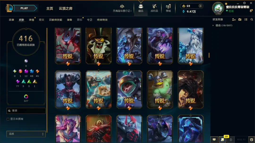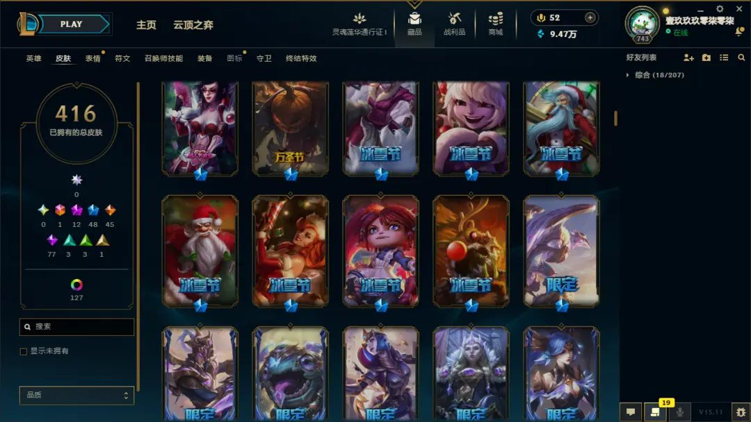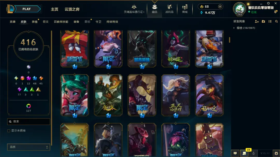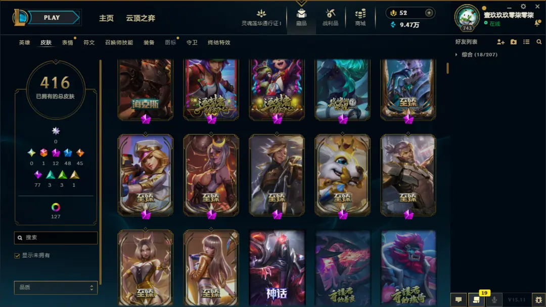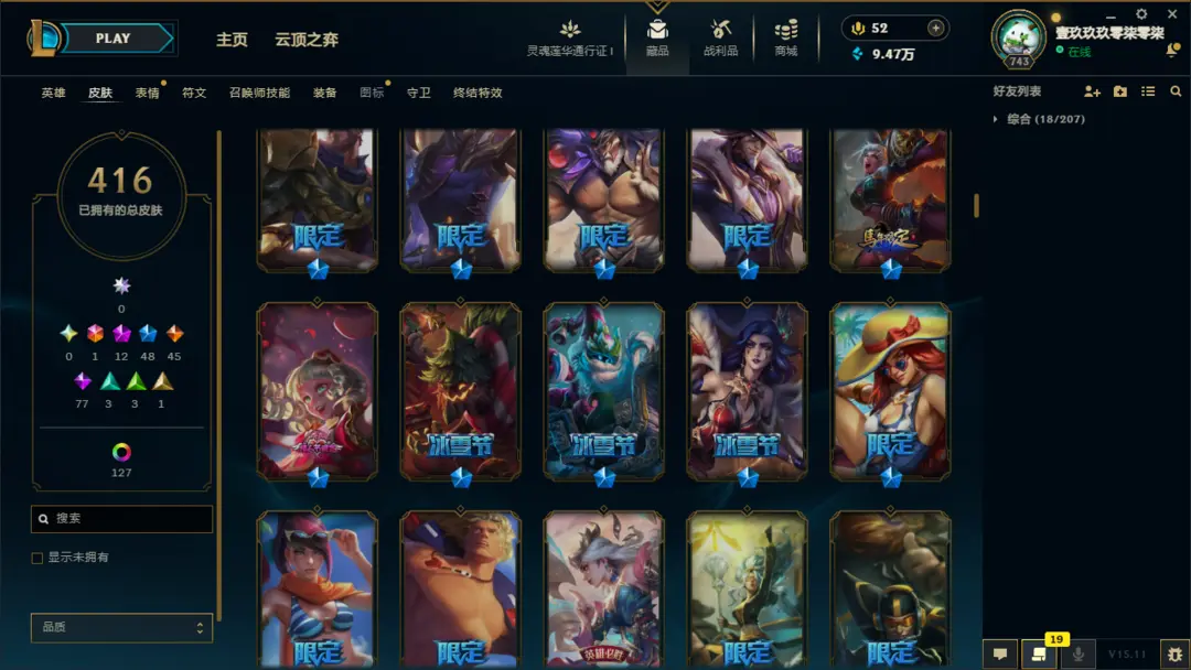 段位准█1000皮肤〓20至臻海克斯〓女帝灰烬〓神龙尊者〓冰雪节限定