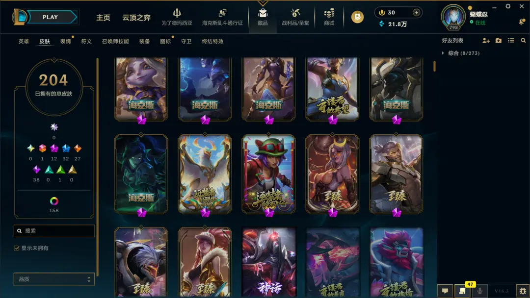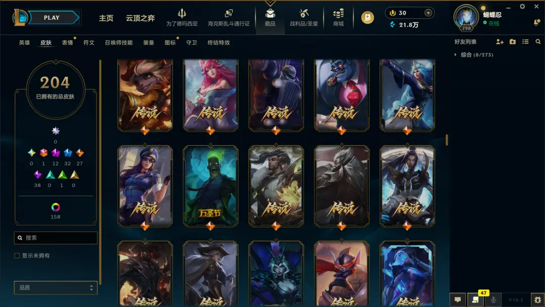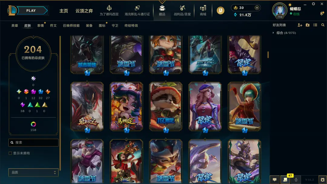 | 英雄: 172 | 皮肤: 208 |