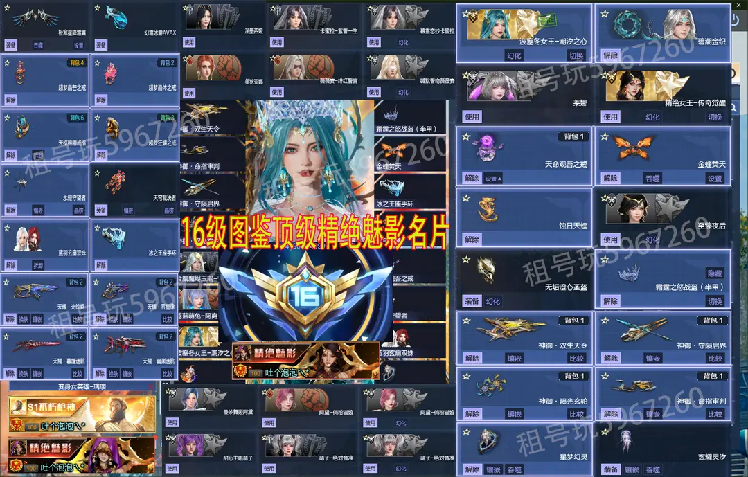 绝版充值第一名精绝魅影名片,禁止打排位 发现立即投诉冻结〖安全模式可帮解除,点上号器的连系号主发安全码 等待会即可〗【五转武装满生命神武流秘境72关基础超10满暴刃,甜味黄油厨神充能极品果哥,,甜味红色果哥,丨光。冰。风三套45星神武丨战甲高悬停高再生芯片】【✅新增道具描述✅】:波塞冬女王-潮夕之心神御套、天耀套-全皮满核心10+10〖莱娜 | 天命观吾之戒〗【全新变身英雄望舒+璃璎丨全息搭建枪+】【英雄影戍-玄械丨英雄焚霄-玄烬丨蓝羽玄扇双姝升级】时溯之轮戒指丨冰雪皇冠霜霆之怒战盔丨 涅槃幻化,涅槃再临女王,蚀日天蝰坐骑丨至臻夜后丨塔防最新三联动英雄陷阱丨五蜉灵天耀全套满配,充值6888新涅槃女王角色戒指翅膀全拉满丨具体装备看图比较详细鼠标点开滑轮放大丨