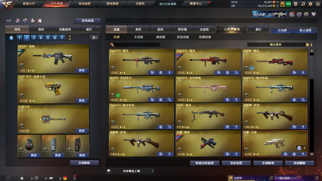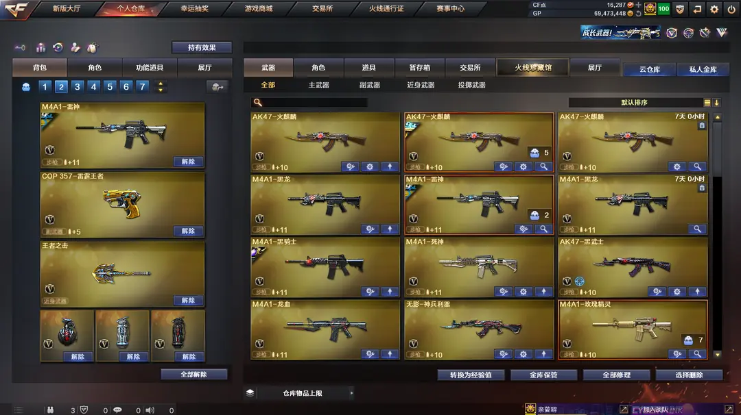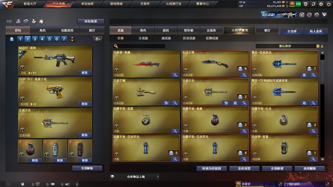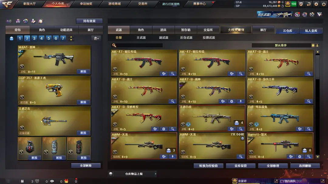 ★★★【主要V:枪械近身投掷武器】火麒麟【火麒麟-冠军之心】雷神【雷神-荣耀之魄】死神、黑武士、龙血、玫瑰精灵、猩红传说x4【老兵】AK47-B-战神、天龙、毁灭【毁灭耀金】极光、金色蔷薇、盘龙、烈龙x2、金魔、修罗、天神x2、屠龙x2、马来剑夜魔、龙啸、擎天、麒麟刺、神圣爆裂者
