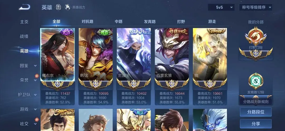 抢先服与正式服互通⭐历史国服最强打野分路✨七国服最强打野玄策韩信镜✨72段打野可排可巅峰✨