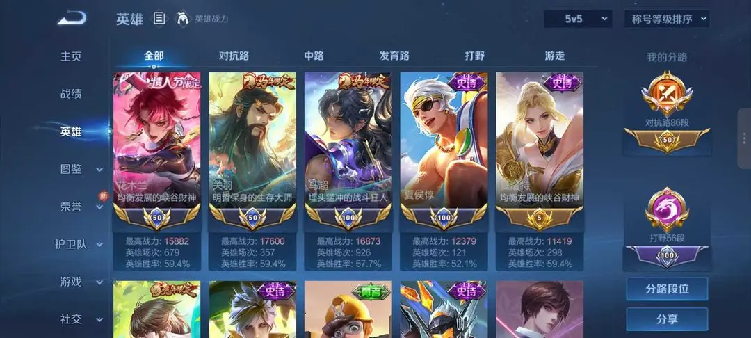 ⭐正式服高战力4小国服马超关羽⭐花木兰夏侯惇⭐极品皮肤号⭐1.7w关羽 1.68w马超⭐