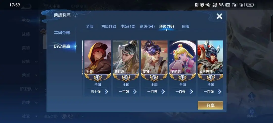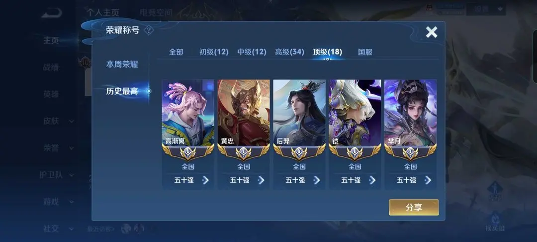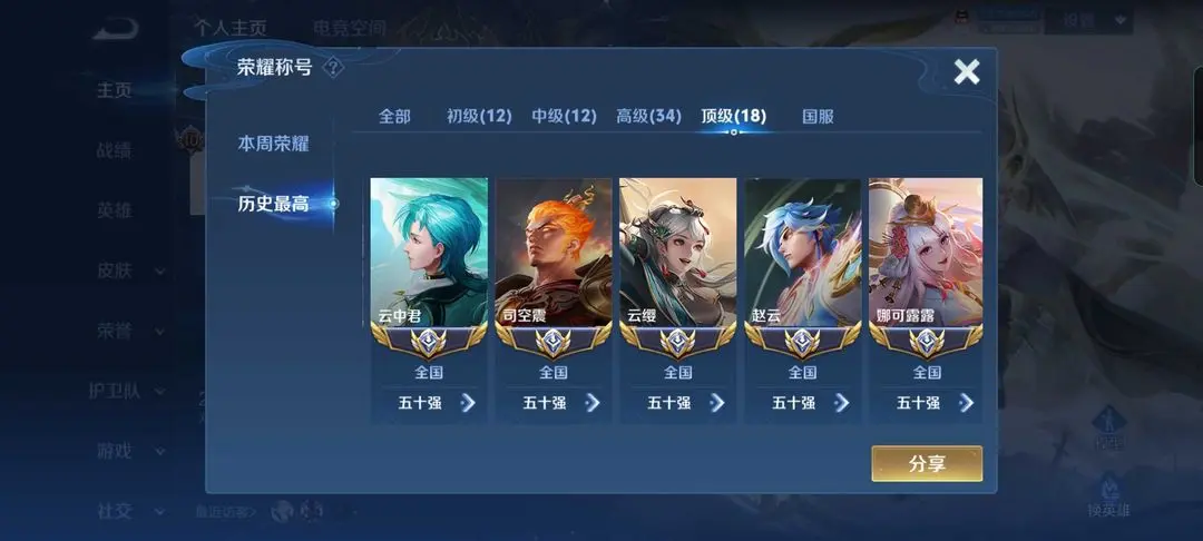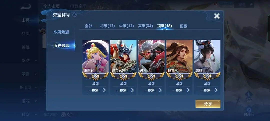❤️18国服♥打野81段发育80段对抗66段♥34省标♥历史巅峰万强百星王者