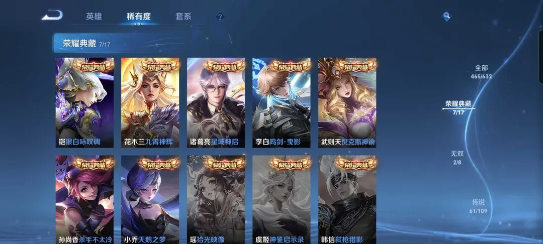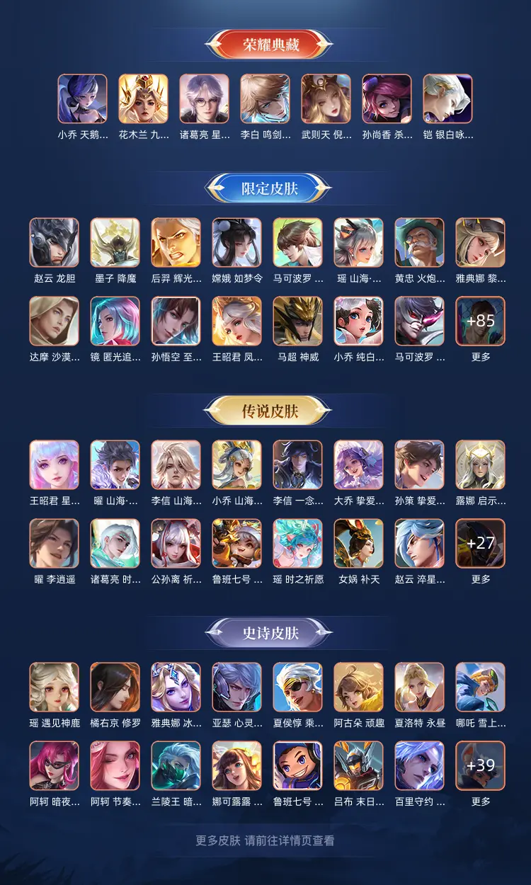 本游戏账号: V10用户,基础段位:至尊星耀V,英雄多,皮肤多。典藏皮肤7个,感受典藏皮肤带来的优质体验快感,FMVP皮肤5个,尽情享受FMVP皮肤带来的主角光环, 私人所属英雄皮肤有:铠 银白咏叹调||花木兰 九霄神辉||诸葛亮 星域神启||李白 鸣剑·曳影||武则天 倪克斯神谕||孙尚香 杀手不太冷||小乔 天鹅之梦艾琳 觅芳踪||露娜 霜月吟||王昭君 永恒水手月亮||云缨 鹤归松栖||大乔 时之奇旅||澜 电玩·雷克斯||公孙离 记忆之芯||虞姬 无限倾心||曜 山海·苍雷引||小乔 山海·琳琅生||李信 山海·炽霜斩||孙尚香 异界灵契||上官婉儿 神器·万象笔||不知火舞 绯月行||王昭君 星穹之声||橘右京 枫霜尽||吕布 天魔缭乱||娜可露露 前尘镜||孙尚香 音你闪耀||后羿 无尽星芒||马可波罗 深海之息||孙策 挚爱之约||大乔 挚爱花嫁||诸葛亮 武陵仙君||露娜 启示之音||孙尚香 末日机甲||蔡文姬 花朝如约||女娲 补天||孙策 末日机甲||梦奇 胖