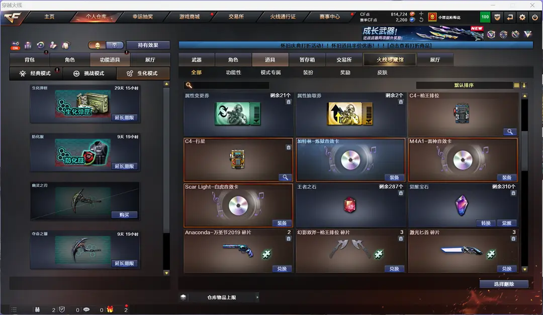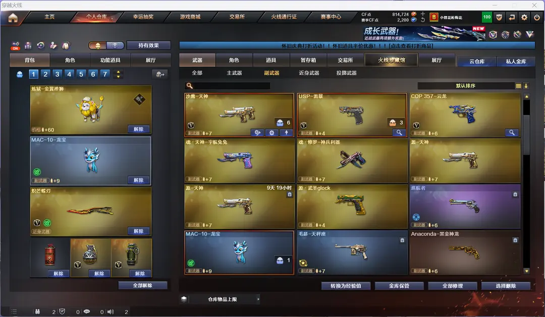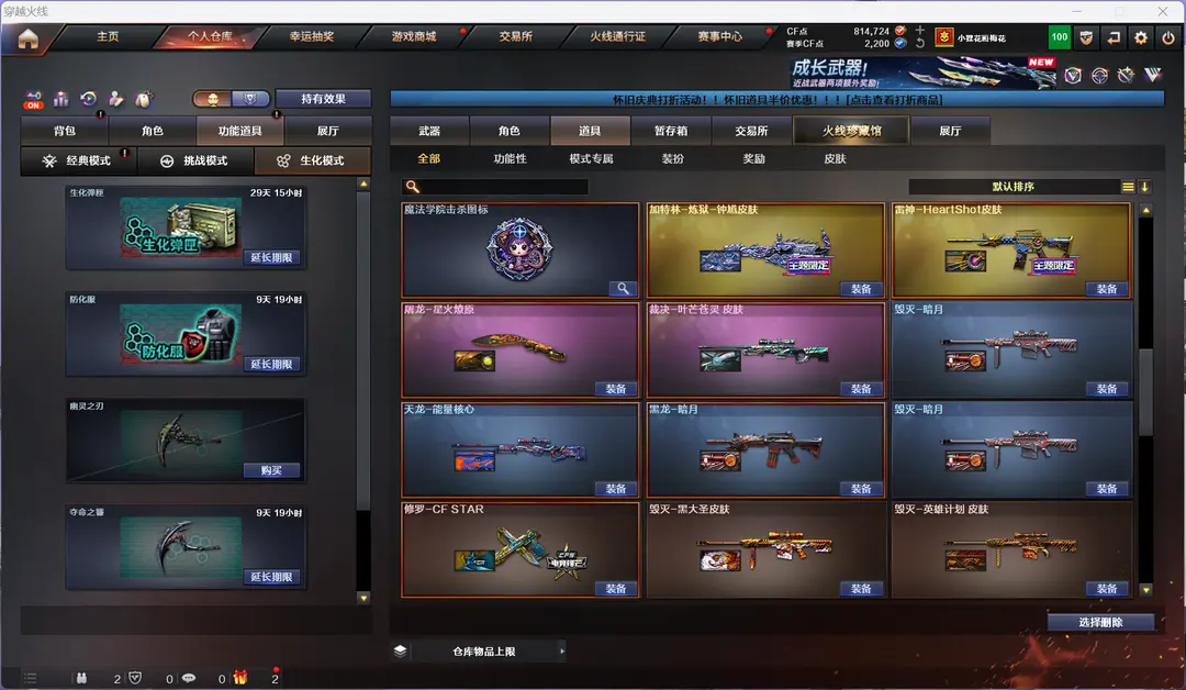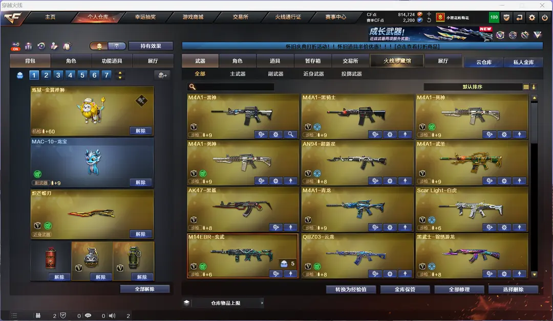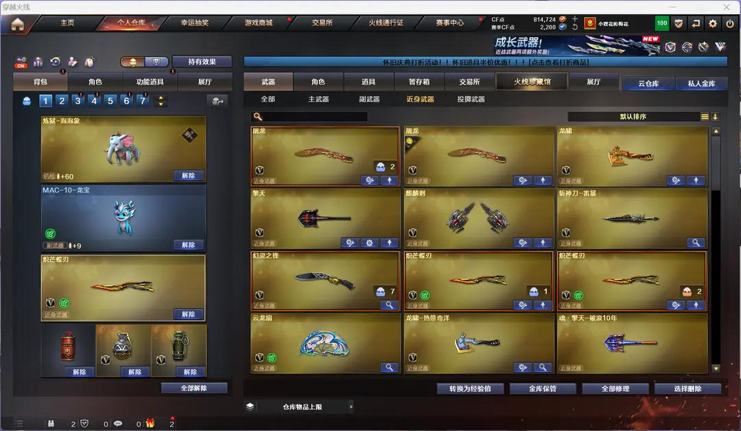 4防生化隼金翼禅狮+泡泡象2把蝴蝶刀6盘6烈钟馗炼狱带炼狱音效卡mac龙宝斯泰尔蝴蝶异变清道夫