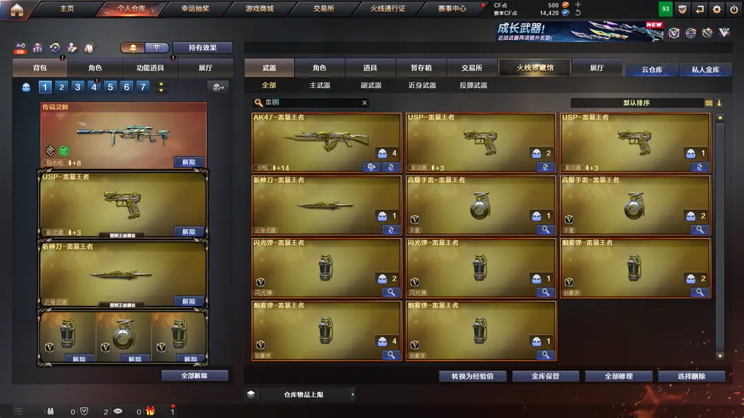 2把雷暴王者usp雷暴王者AK传说灵眸白虎王者芳薇传说影煞雷神带皮排位