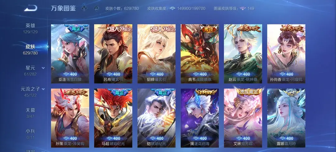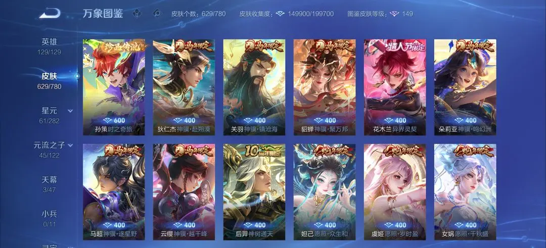 安琪拉颠倒童话荣耀典藏!无相猴子!全马年!异界花木兰!13水晶!全无双!秋月华灯天幕!全传说全年限