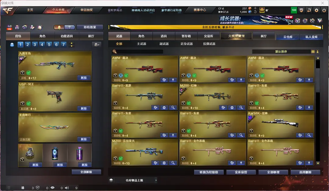 满级九霄圣角4把冥王usp奇幻泡泡象不退包圣谕星骇影煞灵眸幻神巅峰荣耀蝴蝶刀9盘9烈带皮八面玲珑副武