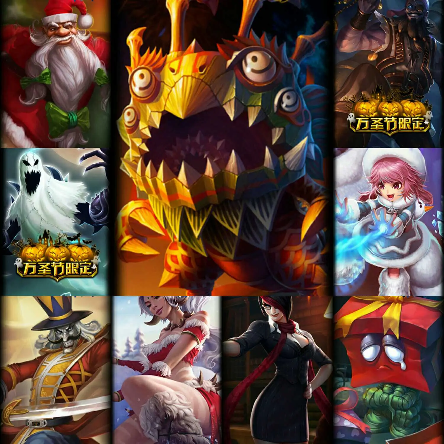 《冰雪节限定》:酒桶、提莫、阿木木、小法师、小炮、小丑、大嘴、努努、琴女、船长、卡尔玛、大树、乐芙兰、辛吉德、大发明家、豹女雪装、辛德拉、赏金猎人、马尔扎哈、纳尔;