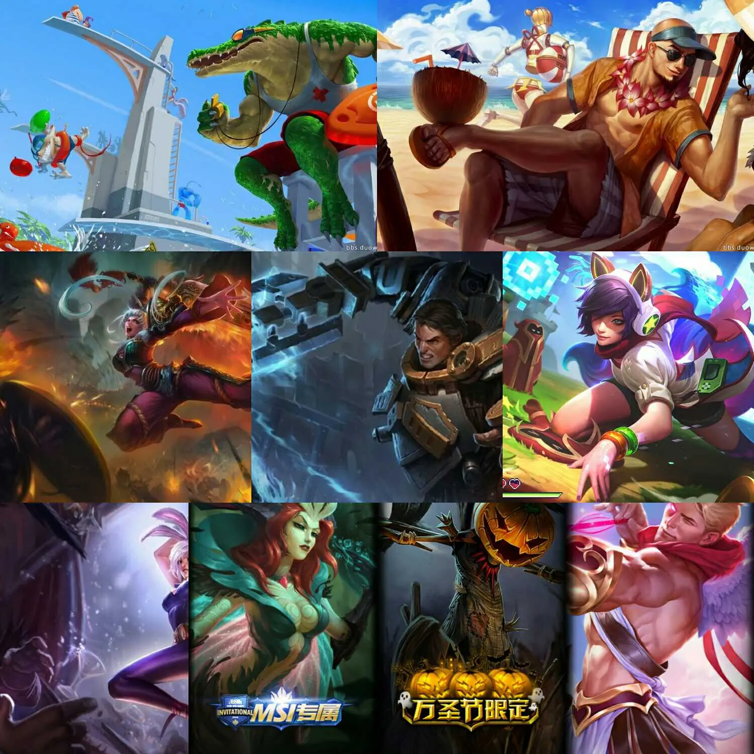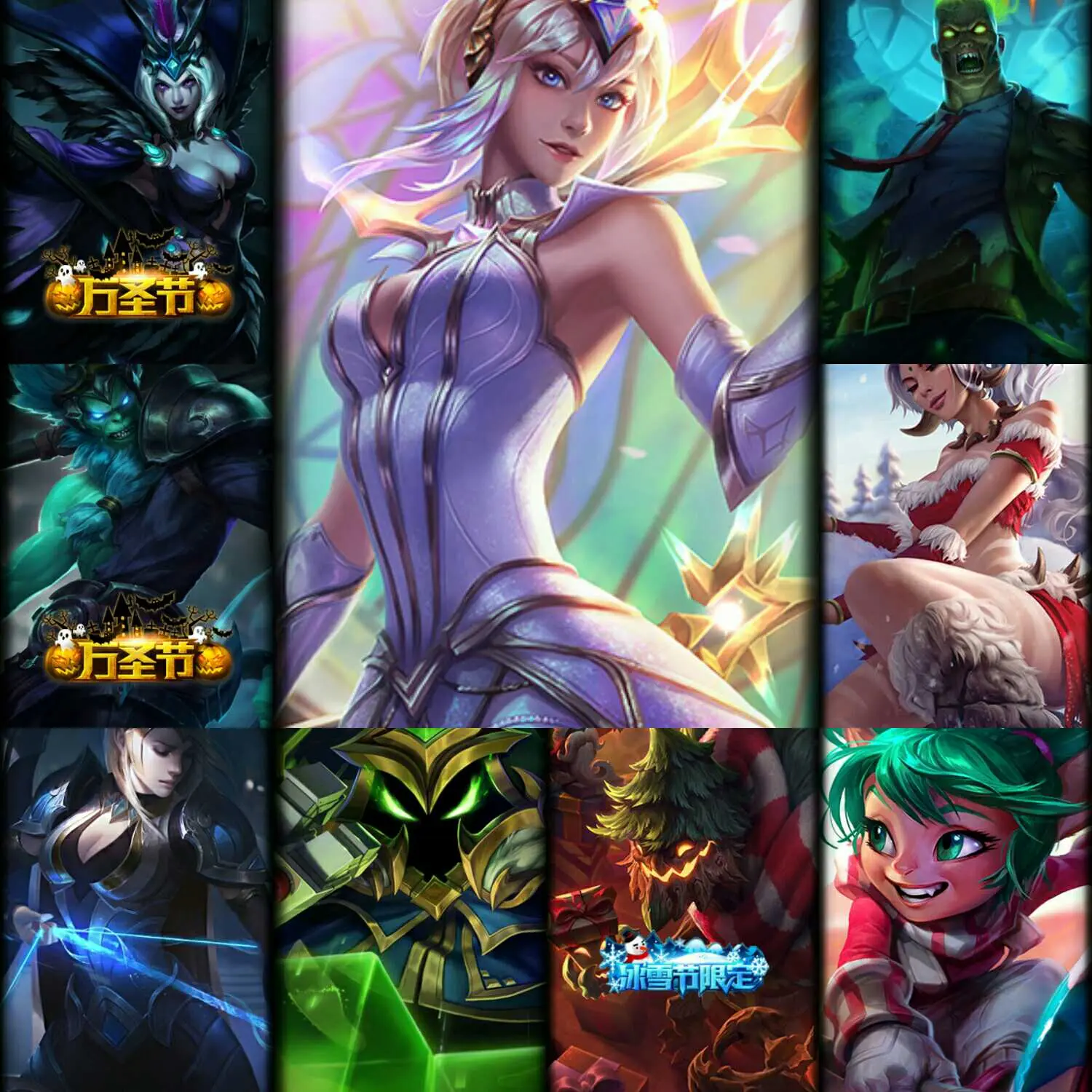 拥有英雄134皮肤582。大元素使、未来EZ、灵魂守卫、觅心女王、玉净夜叉,卧虎藏龙、银龙裁决、关羽、赵子龙、吕布、貂蝉、孙尚香、蓝龙虾、泳池瞎、美猴王、花木兰、觅心射手韦鲁斯、防爆男枪、庆典女皇、至高之拳、驯龙炮手、女校长、兔女郎、兔宝宝、冰霜烈焰安妮、金牌主播德莱文、掠星魔刃、霸天剑魔、防爆士兵、鬼魂新娘莫甘娜、白须瑞兹、上古魔魂、地狱之门卫士、苹果机、重生之沙、死兆星韦鲁斯、苍穹之光、奥术大师炸弹人、灌篮高手德莱厄斯、驯龙女巫、死亡绽放、时之砂艾克、萌猫。