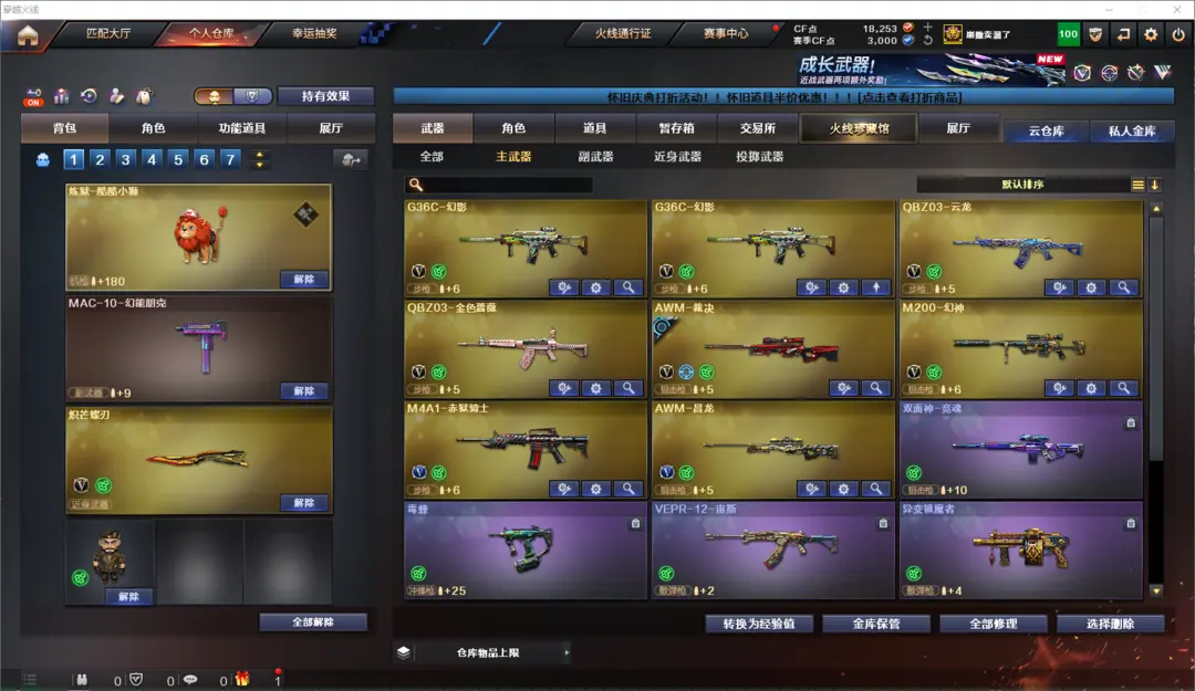 炼狱狮子,炽芒碟刃,隼,G36C-幻影,宙斯Vepr,Scar light白虎,幻神M200,幻神音效卡,英雄角色迷迭香,猫猫手套,毒蜂6烈6盘6修斯泰尔蝴蝶 灵狐职业经理生化四防(佣兵觉醒,生化觉醒,捕食之眼,移速增加)极光大炮,修罗天神x5 火麒麟,雷神x4,武圣,龙血,QBZ-金色蔷薇,天龙,毁灭x2,极光,炼狱,盘龙,修罗,麒麟刺,炫金超新星,超新星-悦享。最近武器装备已到,欢迎各位i老板体验,生化爆破极品双全装。禁止转租。注意:描述的装备全部都有,看清楚描述租号,投诉账号与描述不符的全部永久拉黑,如出现网络环境异常需要扫 码登录的,多登陆几次就行,一般3-5次即可上号。