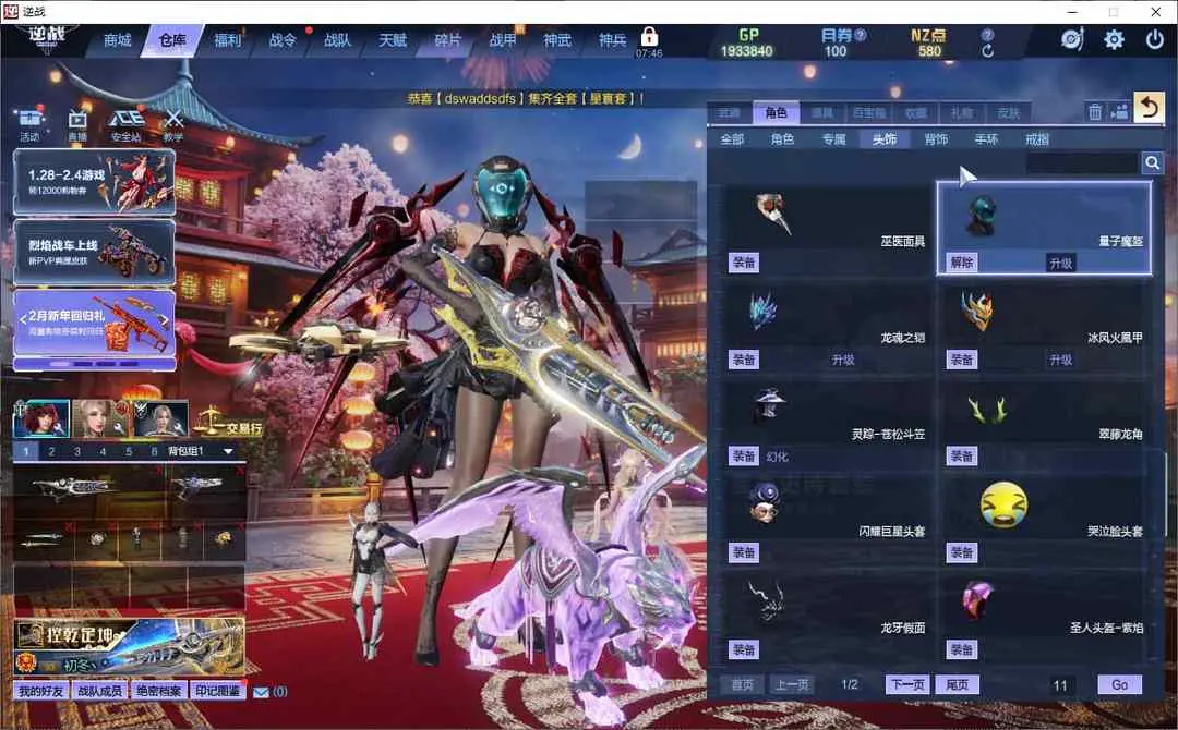 4凌空飞羽/摇光灵仙喳喳裂空兽时空双子/塔防五英雄/星寰套/幻海套/幻域套/六核天帝套/陨星套/虎王套/甜心萌兔套/鼠灵套/天王/天王-月面狂想/魂灵役主/冰神/MSR武神/猎食者/爆炎双铳/冥王/灭烬之嗣/天启主武器(湮灭之影)/爆炎双铳/玄鳞青龙/奇变步狙-诡霆真龙/混沌/原子/混沌缇娜/黄金之翼/西部之王/重装先锋/审判/欧布圣剑/龙-御水吞天/穆伟/卡珊/量子魔盔/暗夜头盔/赤红战翼/熊猫背包/赤红战翼/摇光灵仙/喳喳/逆元裂空兽/时空双子/墨韵/剑风/铁卫/领主/大魔导师/雷霆霸虎/紫霄灵虎/天外来客/稀世精华*7/绯羽/m233/芙蕾雅/星云战车/海拉/饕鬄/机械鲲/金乌/战斗神翼/小达古/墨/流氓兔/鲲灵/地狱犬/希亚/赤炎钢虎/三卡永久/空气墙/三级百宝箱/11页皮肤/龙姬裁决女帝/绀蓝套
