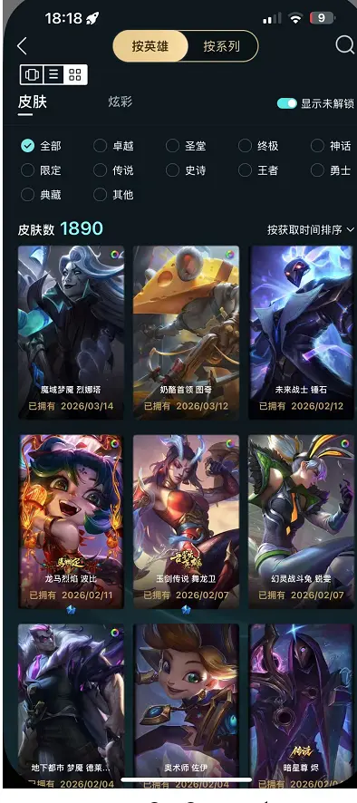 | 英雄: 172 | 皮肤: 1287 |